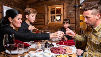 gemütlichen Hütten-Fodue Abend im rustikalen Ambiente der Sportalm, jede Woche im Rahmen der