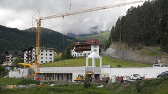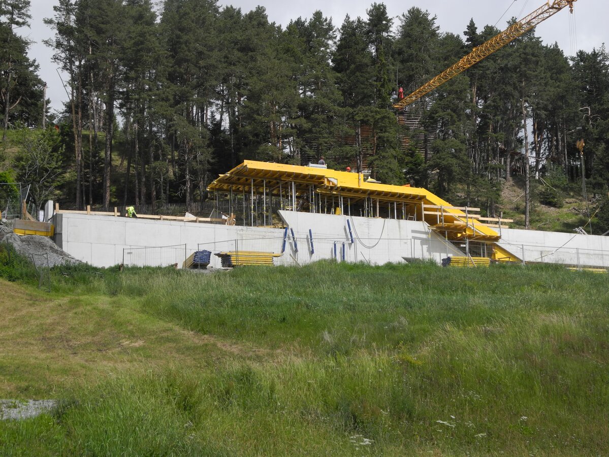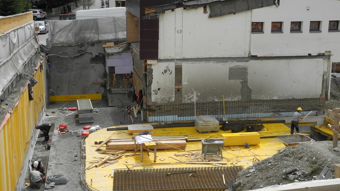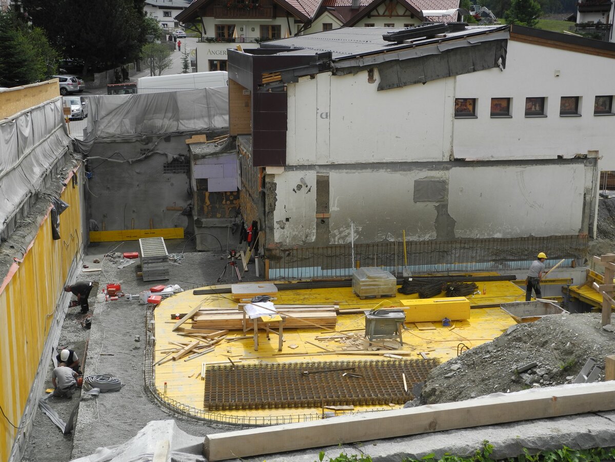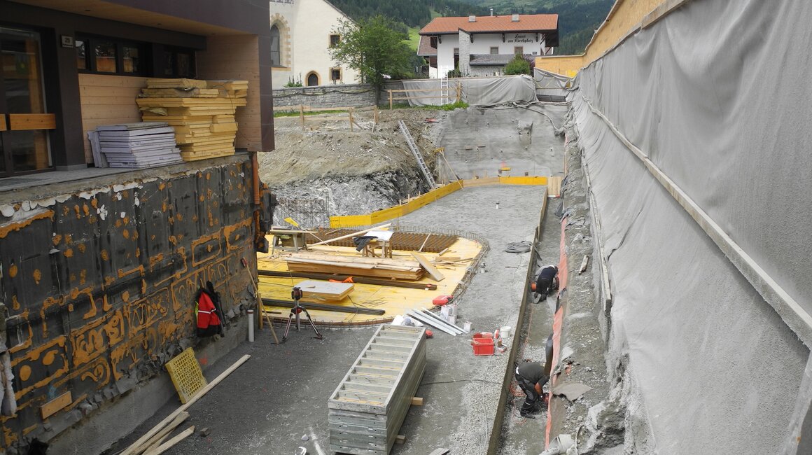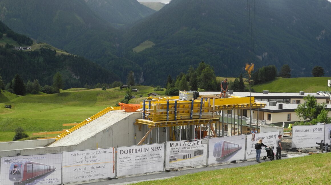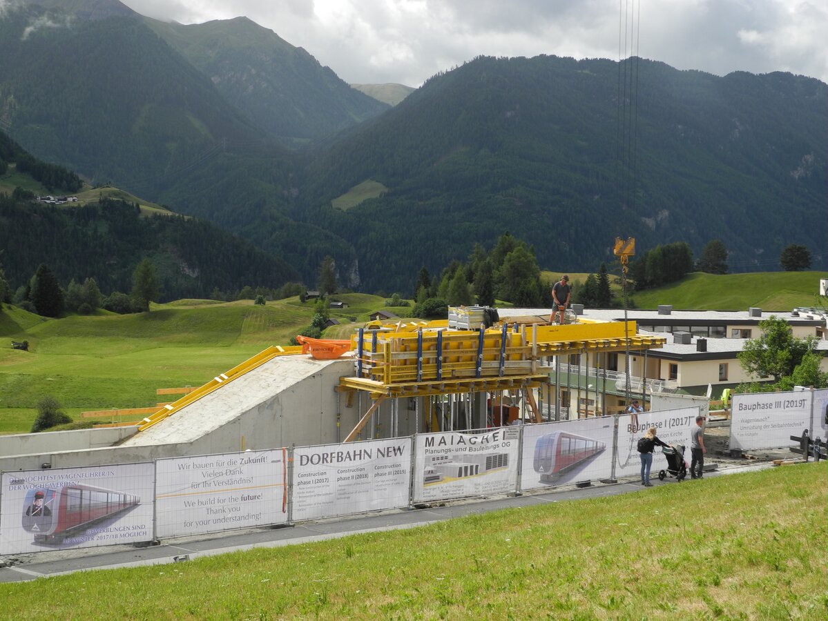 Die Bauarbeiten an der neuen Station Kirche laufen während der Sommermonate auf Hochtouren weiter, damit auch diese Station den Gästen im Dezember 2017 zur Verfügung steht. Momentan wird die erste Decke, sowie der Zugangstunnel Richtung Kirchgasse geschalt und betoniert. Die Bodenplatte von der Garage beim Widum ist bereits fertig gestellt. Auch die Betonschneidearbeiten für die neuen Türen im bestehenden Tunnel sind mittlerweile abgeschlossen.