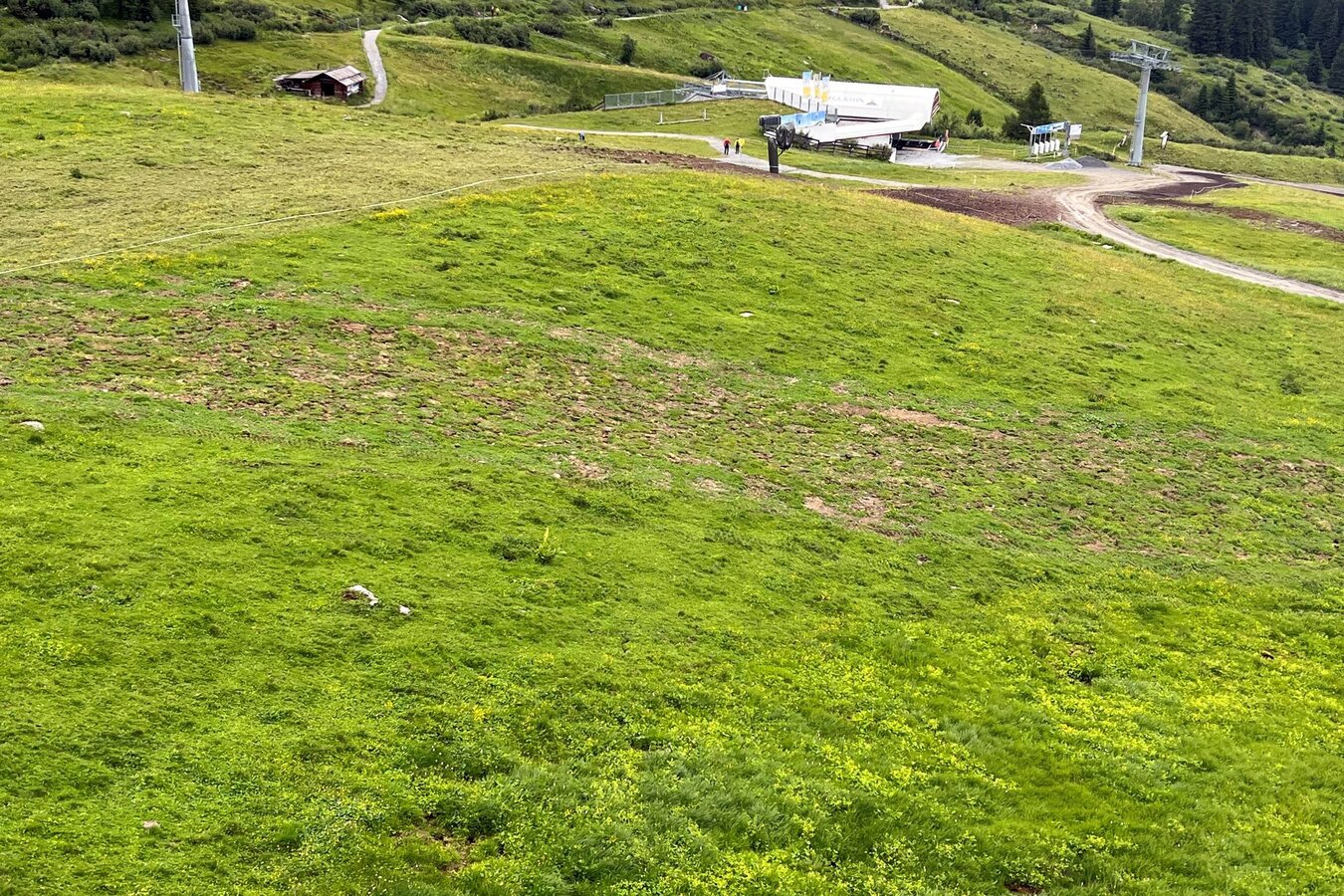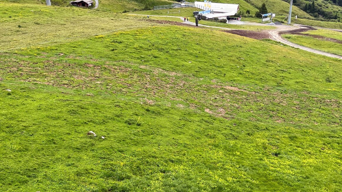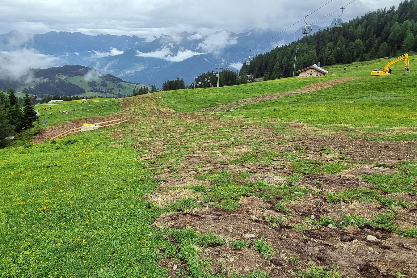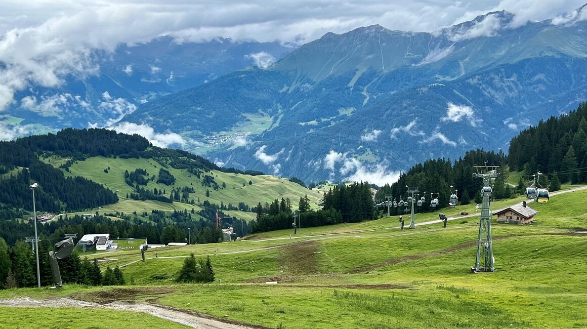 Blickt man von der Bergstation hinunter ins Tal, lässt sich bereits erahnen, wo die neue Bahn ab Dezember 2023 die Gäste aufs Komperdell befördern wird. Die Trasse ist mittlerweile vollständig ausgeholzt, der Kabelgraben sucht sich derzeit den Weg von der Berg- zur Zwischenstation. Aber keine Angst: Im Bereich Komperdell konnten sämtliche Arbeiten am Graben bzw. den Stützenfundamenten abgeschlossen werden – es gibt keinerlei Einschränkungen mehr für Mensch oder Tier.