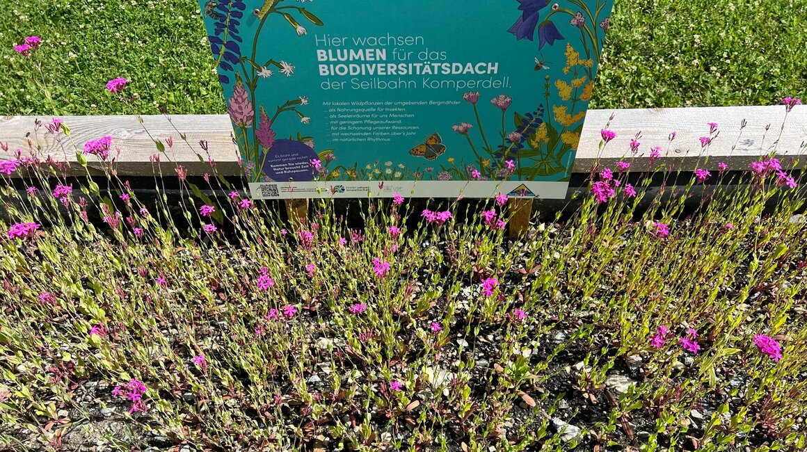 Bereits im letzten Sommer wurden auf den Bergwiesen von Serfaus Blumensamen eingesammelt, die sich nun in großen Blumentrögen an der Talstation vermehren können. Der Grund dafür liegt darin, dass das Dach der neuen Komperdellbahn-Talstation – ein sogenanntes Biodiversitätsdach – mit heimischen Blumen begrünt werden soll. „Blüten.Reich – Gemeinsam für Vielfalt“ nennt sich diese Initiative, der sich die Seilbahn Komperdellbahn GmbH angeschlossen hat, um artenreiche Blumenwiesen und Wildblumenflächen zu erhalten bzw. zu renaturieren.