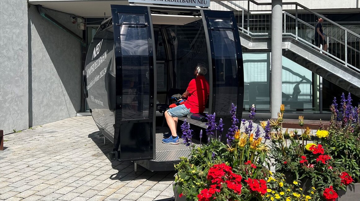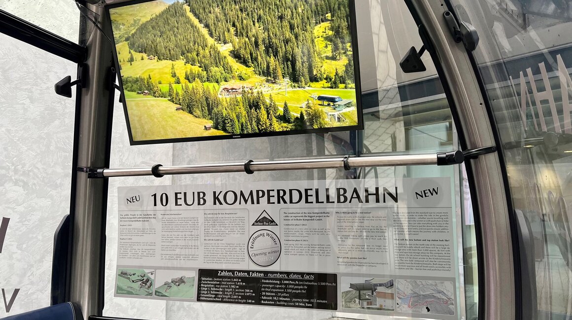 An der Talstation befindet sich schon seit geraumer Zeit eine Mustergondel, um eine bessere Vorstellung zu bekommen, wie die neuen Kabinen aussehen werden. Diese wurde nun zu einem Infopoint umfunktioniert, um die Gäste bestmöglich über die größte Investition in der Geschichte der Seilbahn Komperdell GmbH zu informieren.