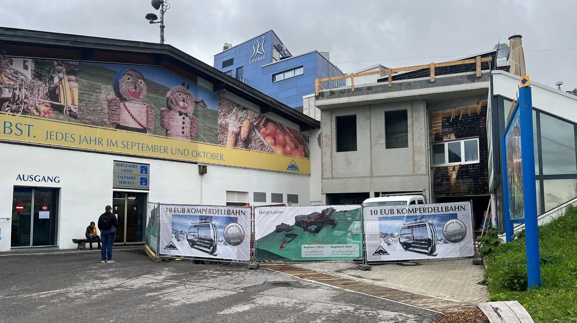 Auch an der Talstation sind erste Umbauarbeiten sichtbar. Hinter der Talstation entstand ein komplett neues Gebäude: die betriebseigene Schlosserei der Seilbahn Komperdell GmbH. Aktuell ist die Schlosserei im Untergeschoss der Komperdellbahn untergebracht. Hier entstehen im nächsten Jahr neue Räumlichkeiten für das großzügige Skidepot. Damit die Schlosserarbeiten im kommenden Sommer nicht unterbrochen werden müssen, wurde das neue Gebäude bereits jetzt schon errichtet. Ab Herbst kann die neue Schlosserei bezogen werden.