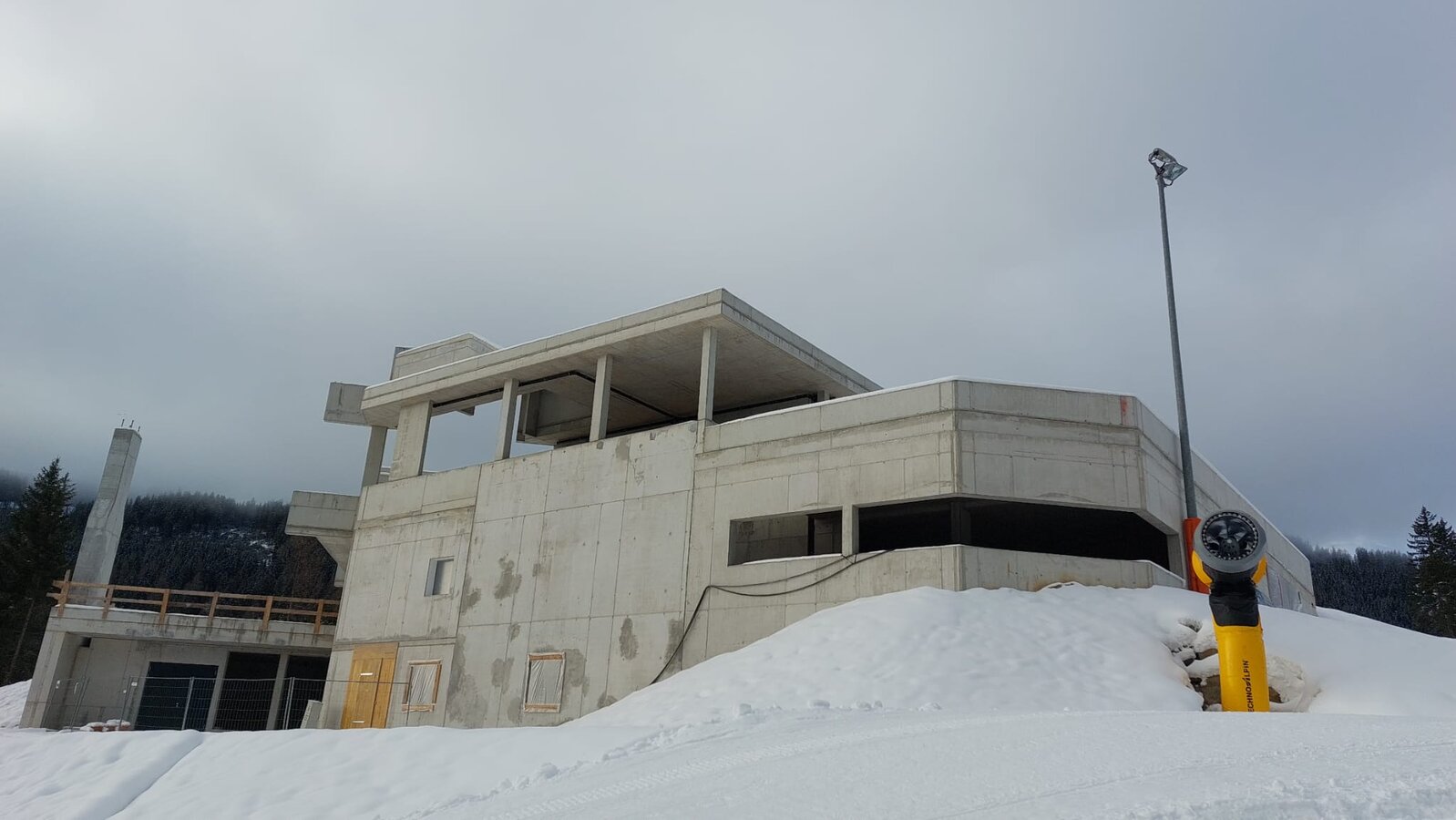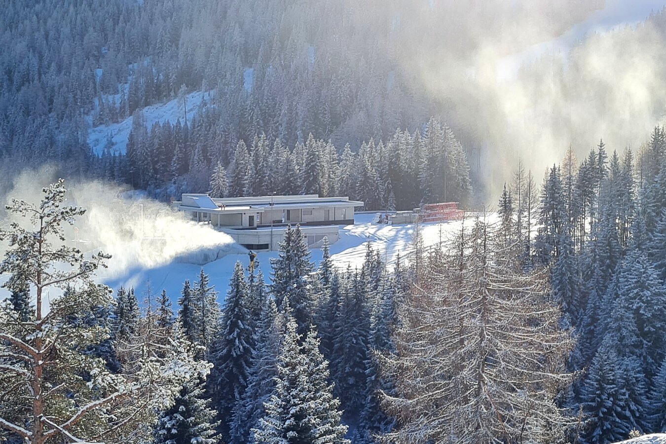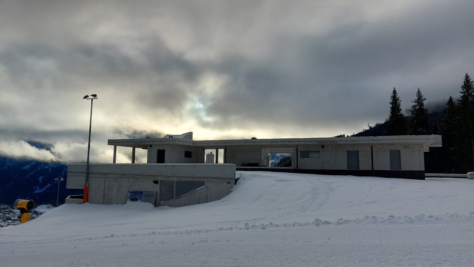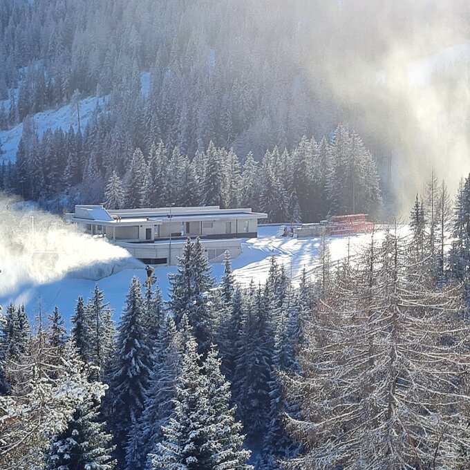 Die Rohbauarbeiten an der neuen Zwischenstation konnten pünktlich vor dem ersten Schneefall abgeschlossen werden - die Fertigstellung erfolgt dann im kommenden Jahr 2023. Im oberen Bereich der Zwischenstation wurde sämtliches Aushubmaterial wieder eingebaut – der Gondelbahnhof ist mehr oder weniger von außen gar nicht mehr sichtbar. Die Begrünung wird im kommenden Frühjahr erledigt - das Gebäude wird dann optimal in das Landschaftsbild integriert sein.