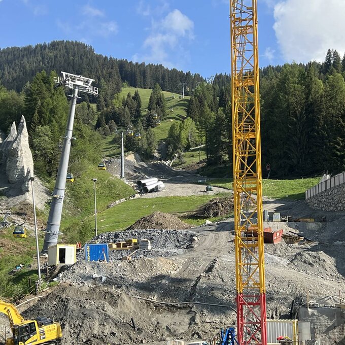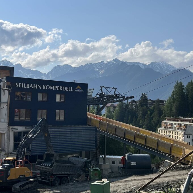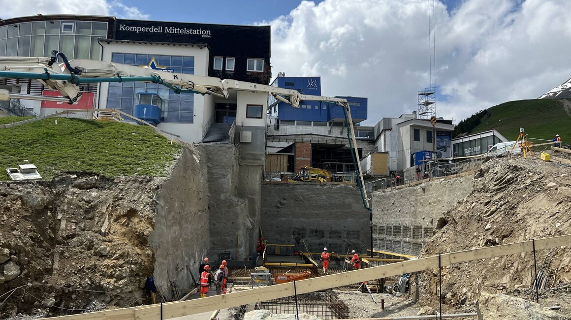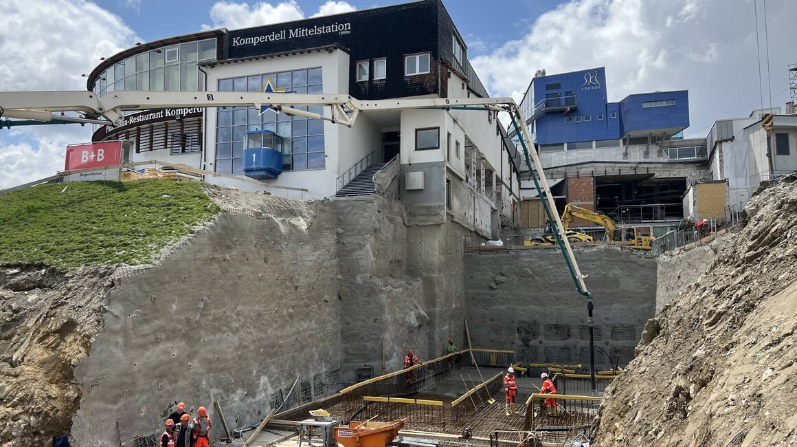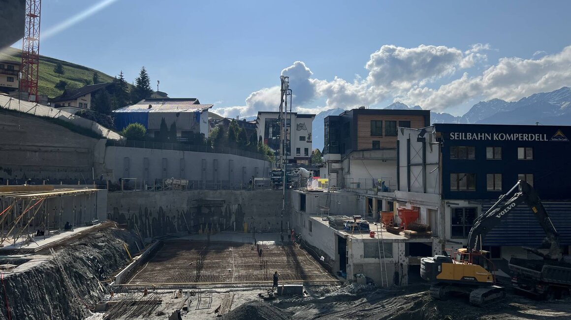 Die Aushubarbeiten an der Bergstation konnten mittlerweile ebenfalls fertiggestellt werden, die Baugrubensicherung ist abgeschlossen. Auch oben am Berg wurden bereits die ersten Betonarbeiten durchgeführt, derzeit werden die Grundleitungen verlegt. Die Baustellenzufahrt im Bereich Komperdell konnte erfolgreich umgelegt werden, um ein Aufeinandertreffen von Wanderern und Baufahrzeugen zu verhindern.