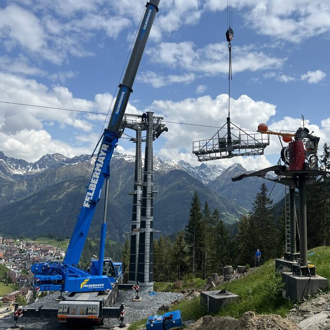 Es wurden auch bereits die ersten Stützen gestellt - und zwar jene, die mittels Telekran montiert werden können. Die Montage der restlichen Stützen erfolgt während der Sommermonate per Helikopter.