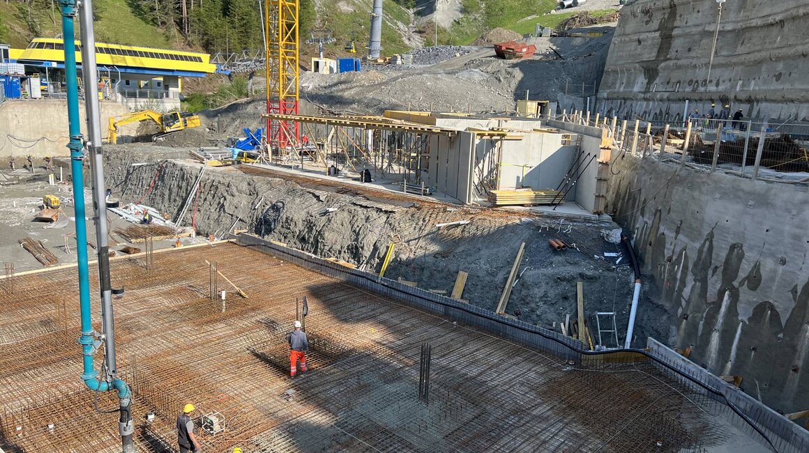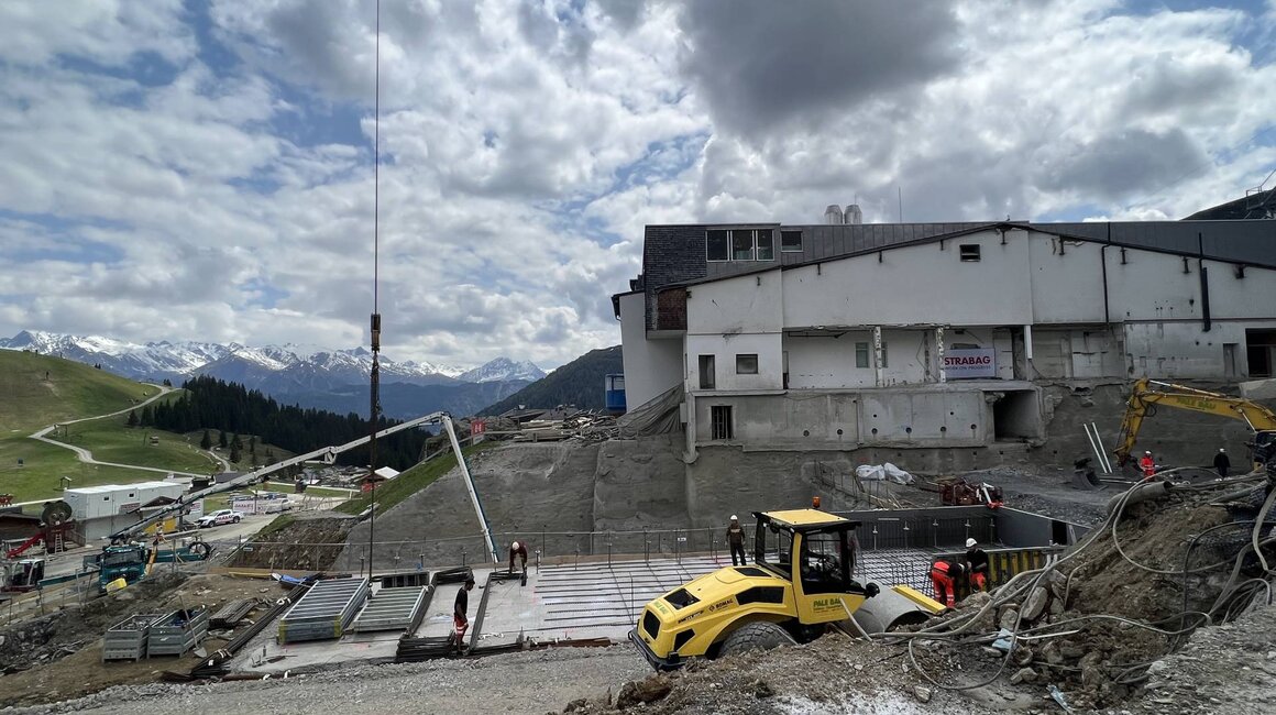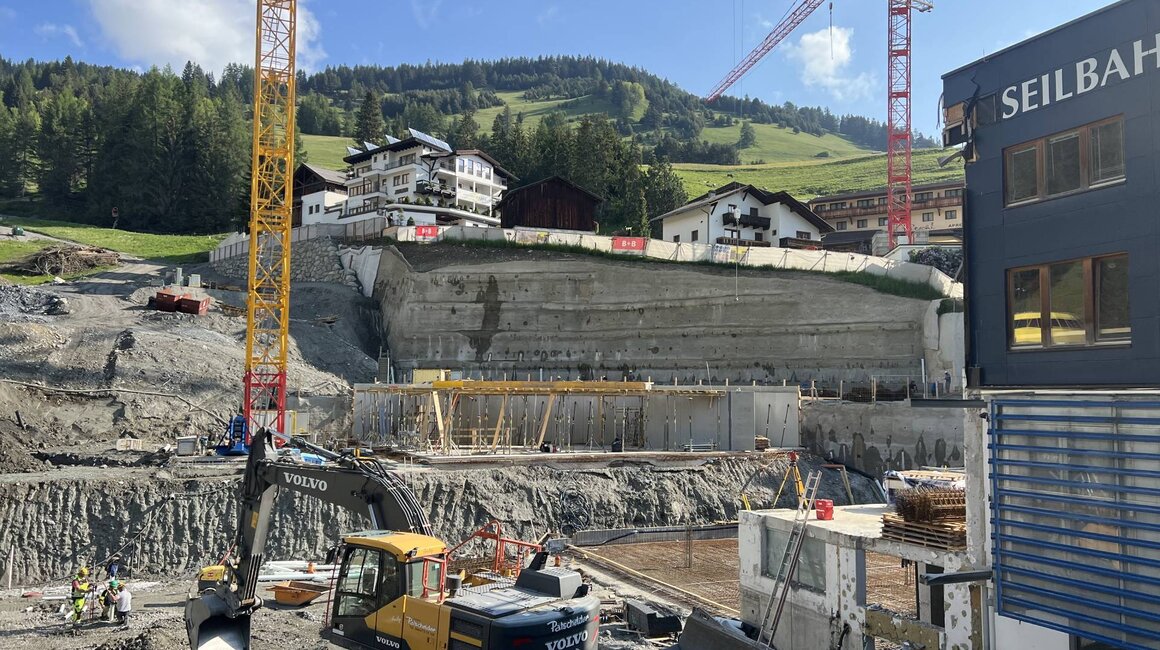Der Baufortschritt läuft an allen drei Stationen sehr gut! An der Tal-, Zwischen- und Bergstation laufen die Bauarbeiten auf Hochtouren. An der Talstation sind die Aushubarbeiten abgeschlossen, derzeit werden sämtliche Grundleitungen verlegt. Die Fundamente sowie die unterschiedlichen Bodenplatten wurden großteils betoniert. Einzelne Fertigteilwände sind gestellt, die ersten Räumlichkeiten lassen sich bereits erahnen.