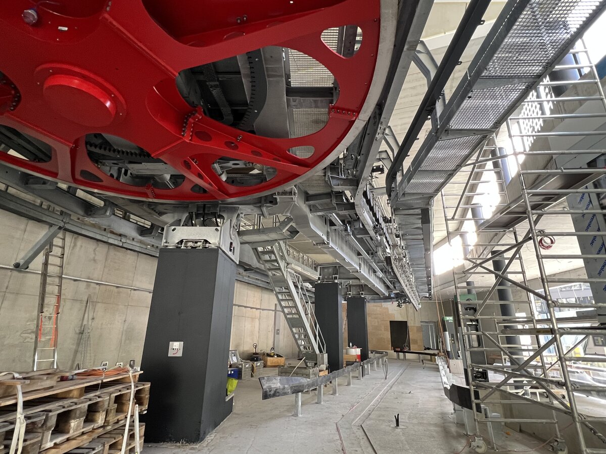 Im letzten Beitrag habe ich angekündigt, dass das Seil im September auf die Rollen gelegt wird, damit schon bald mit den Testfahrten begonnen werden kann. Wie bereits erwähnt wurden diese in der zweiten Sektion bereits erfolgreich durchgeführt, in der ersten Sektion wird es nicht mehr allzu lange dauern, bis auch hier die Gondeln aus der Station fahren werden. Die endgültige Abnahme wird dann ab Ende November beginnen, somit sollten wir pünktlich zum Saisonstart die Genehmigung für den Fahrbetrieb erhalten.