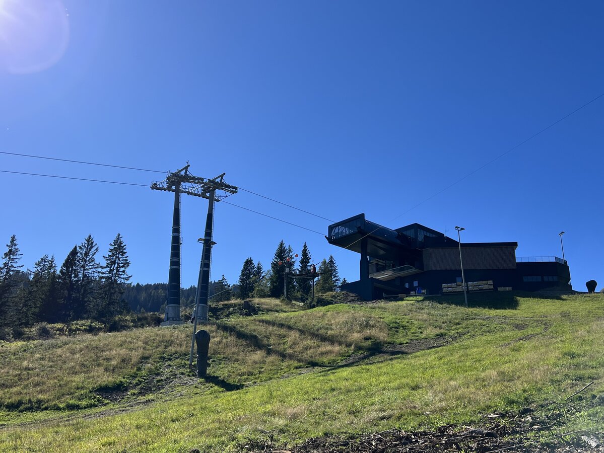 Der Großteil der Arbeiten am Gebäude der Zwischenstation konnte ja schon vor einiger Zeit abgeschlossen werden, es fehlt lediglich noch die LED Wall im Zugangsbereich. Zwischenzeitlich wurde auch der gesamte Aussenbereich fertig gestellt, das Gelände ist komplett humusiert, die Zu- und Abwege neu angelegt. Die Firma Doppelmayr arbeitet derzeit intensiv an den Einstellungsarbeiten in der Station.