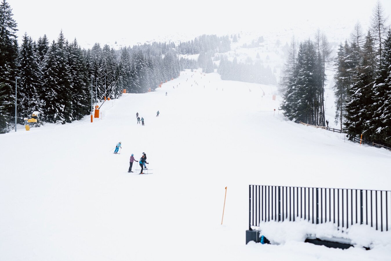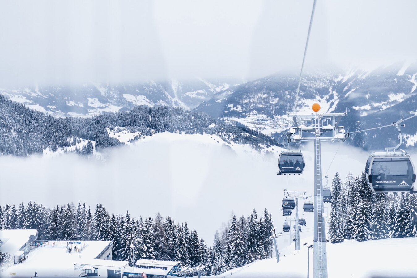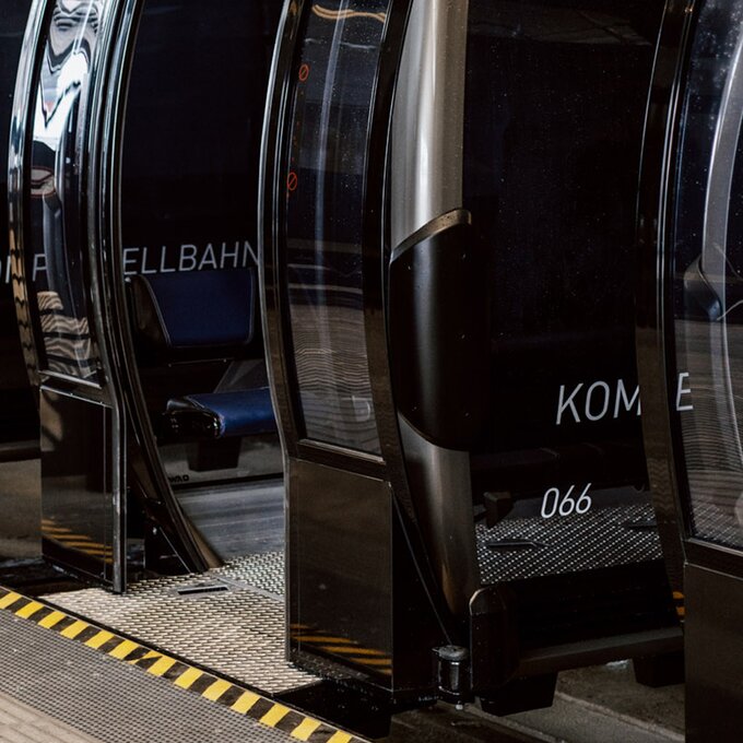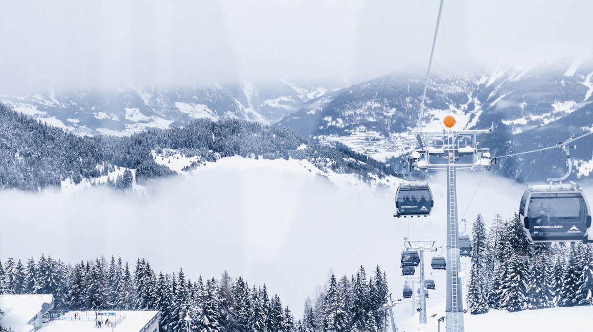 Aktuell sind bei der Komperdellbahn 104 Kabinen am Seil. Damit können 3.000 Personen pro Stunde befördert werden. „Das ist aber noch nicht der Endausbau“, sagt Reini. „Wir können die Förderkapazität auf bis zu 3.500 Personen pro Stunde erhöhen.“ Der Einstieg in die modernen Kabinen ist auch mit Kinderwagen oder Rollstuhl problemlos möglich. „Die Kabinen fahren sehr langsam durch die Station und die Ski werden in die Kabinen mitgenommen. Damit entfällt das hektische Ski-in-den-Skikorb-stellen, das in der Vergangenheit oftmals für einen kurzen Stau beim Einsteigen gesorgt hat.