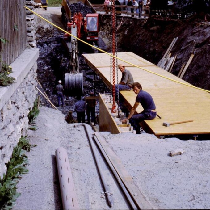 Zu Beginn der Wintersaison wurden die Baugruben wieder verschlossen. Im Frühjahr erblickten die Gruben dann wieder Sonnenlicht. Im ersten Jahr wurden 1.000 Meter geschafft. Ein Zeitzeuge berichtete ebenfalls davon, dass sie erleichtert waren, dass die Baustopps immer eingehalten wurden. Während den Wintermonaten konnte die heutige Dorfbahnstraße uneingeschränkt begangen bzw. befahren werden. Der Skibus nahm wie gewohnt seine Fahrt auf.
