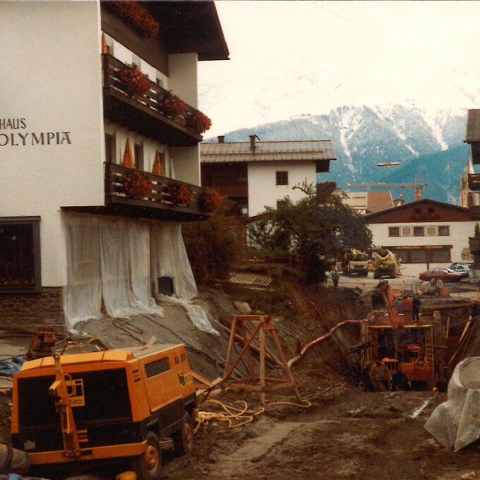 Gesprengt wurde, was das „Zeug“ hält bzw. was die Häuser hielten. Einige Häuser wurden auf sehr schlechtem Fundament erbaut. Das Hotel Alte Schmiede wurde beispielsweise seinerzeit ohne Fundament auf schlechtem Moränenuntergrund errichtet. Die Gegebenheiten forderten die Baupartien. Kritische Hänge mussten zusätzlich mit Spritzbeton abgesichert werden. Grundwasser bzw. Hangwasser wurde abgepumpt. Arbeiter berichteten von einer oftmals sehr „gatschigen“ (matschigen) Angelegenheit.