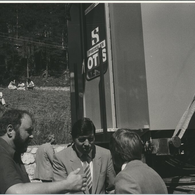 Folgende Forderungen wurden an das neue innerörtliche Transportmittel gestellt: 1. Es sollte geräuschlos sein und 2. das Dorfbild sollte unverändert bleiben. Mehrere Exkursionen folgten.