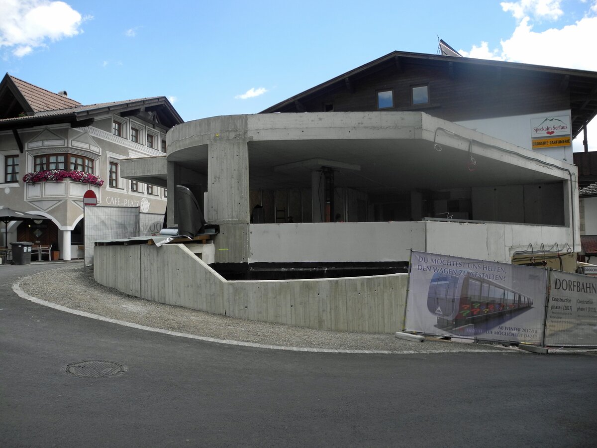 Die Bauarbeiten in der oberen Etage laufen ebenfalls auf Hochtouren, hier wird dann wieder die Raiffeisenbank untergebracht sein. Natürlich bekommt auch die Station Zentrum tolle Inszenierungen rund um den Ort Serfaus. Details werden allerdings noch nicht verraten.