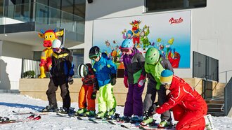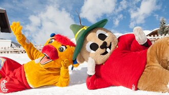 Unsere Maskottchen heißen Murmli und Berta, ein Murmeltier und eine Kuh. Und die trifft man täglich bei den Kinderarealen in Serfaus oder Fiss-Ladis, wenn sie die Kleinen und Kleinsten mit ihren Späßchen zum Lachen bringen. Oft sieht man sie auch bei unseren „Zauberteppichen“, die wir als Förderbänder in den Kinderarealen für die Skineulinge als „Aufstiegshilfen“ einsetzen.