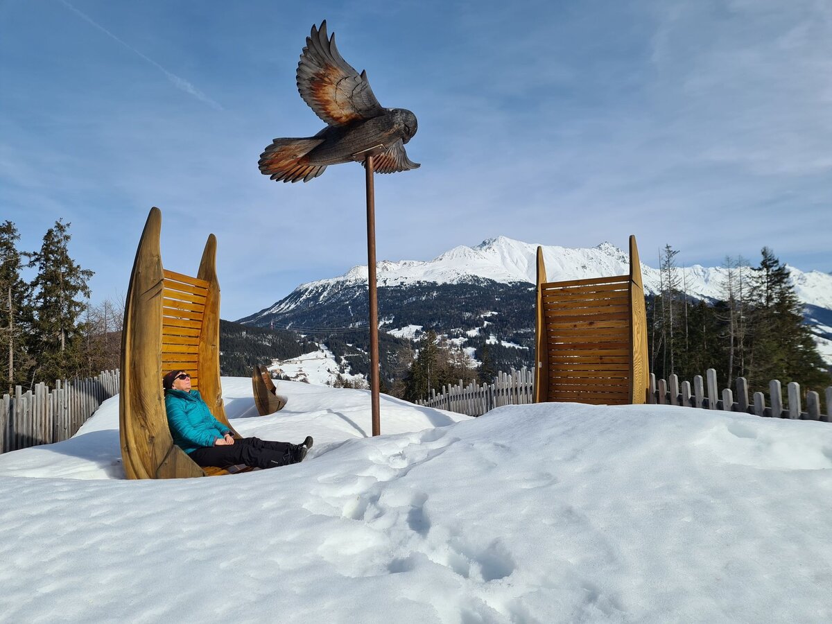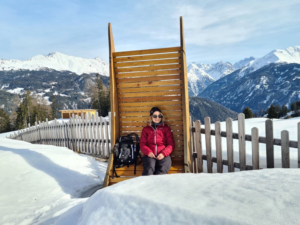 Kinder finden (Winter)wandern wahrscheinlich erstmal langweilig - da muss man sich schon etwas ausdenken, um sie entsprechend zu motivieren. Mein Tipp: Der Fisser Kraft- und Sinnesweg. Zahlreiche Stationen, die die Sinne zu täuschen vermögen, faszinieren Groß und Klein. Da ist Winterwandern bestimmt gleich gar nicht mehr sooo uncool. Und panoramareiche Bankla zum Entspannen finden sich auch hier viele. Pluspunkt: Die Kleinsten kannst du mühelos mit der Rodel durch die weiße Winterwunderwelt ziehen. Außerdem gelangst du am Ende des Fisser Kraft- und Sinnesweges zum Einstieg der Rodelbahn Fiss. Super, denn eine actionreiche Rodelpartie rundet eine aussichtsreiche Winterwanderung perfekt ab, wie ich finde.