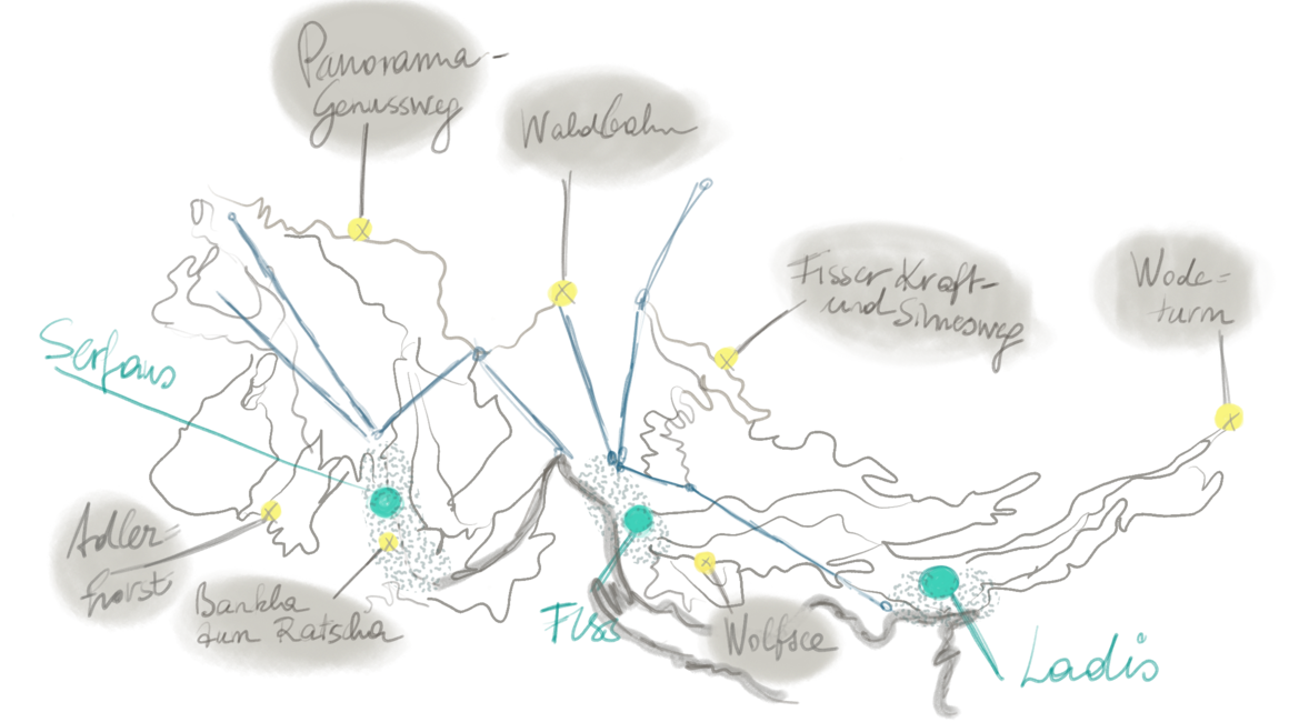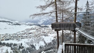 Last but not least möchte ich dir ein spektakuläres Plätzchen vorstellen: den Adlerhorst in Serfaus. Hier ist einiges an Mut gefragt, denn den schwebenden Teil der Aussichtsplattform erreichst du über eine Hängebrücke in luftiger Höhe. Aber wer sich überwinden kann, wird mit einem tollen Ausblick auf das Dorf Serfaus belohnt. Du gelangst über den inszenierten Six-Senses-Weg von Serfaus aus dorthin.