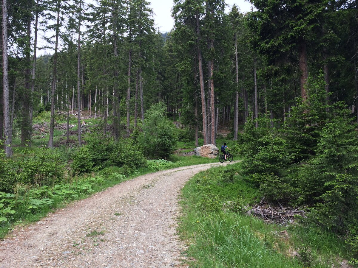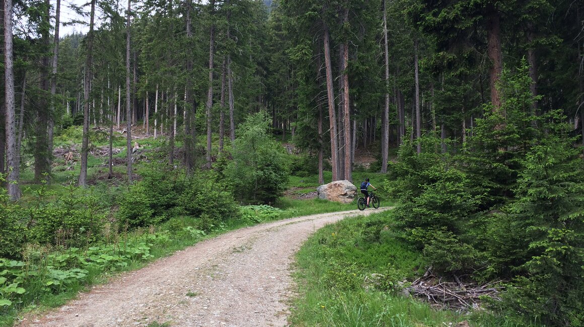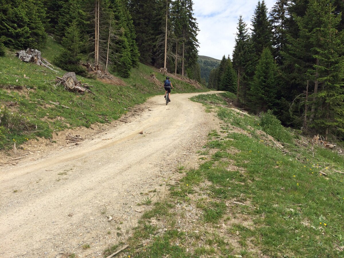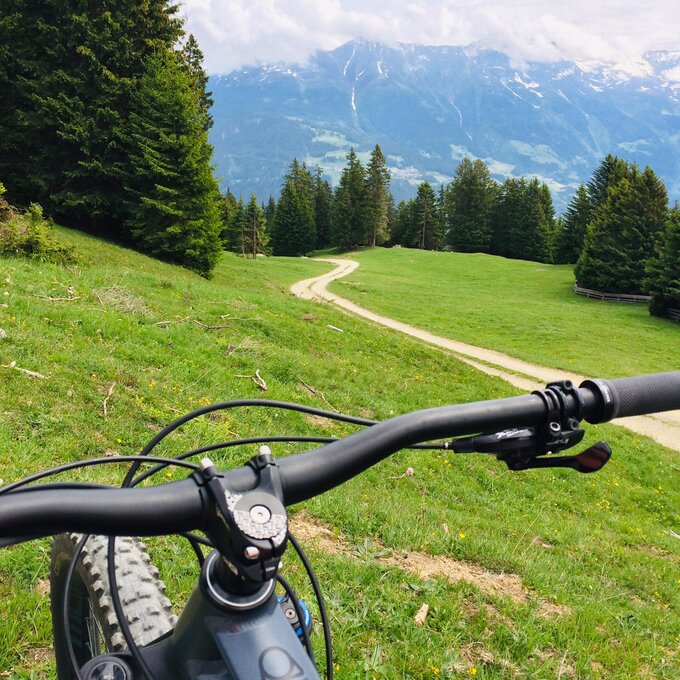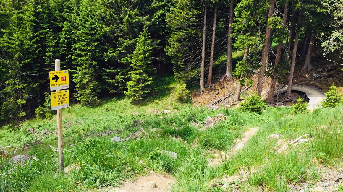 Den Weg zur Frommes Alp kreuzt zweimal der naturbelassene Frommestrail. Die Tour kann durchaus mit einem Singletrail zurück nach Fiss abgeändert werden.