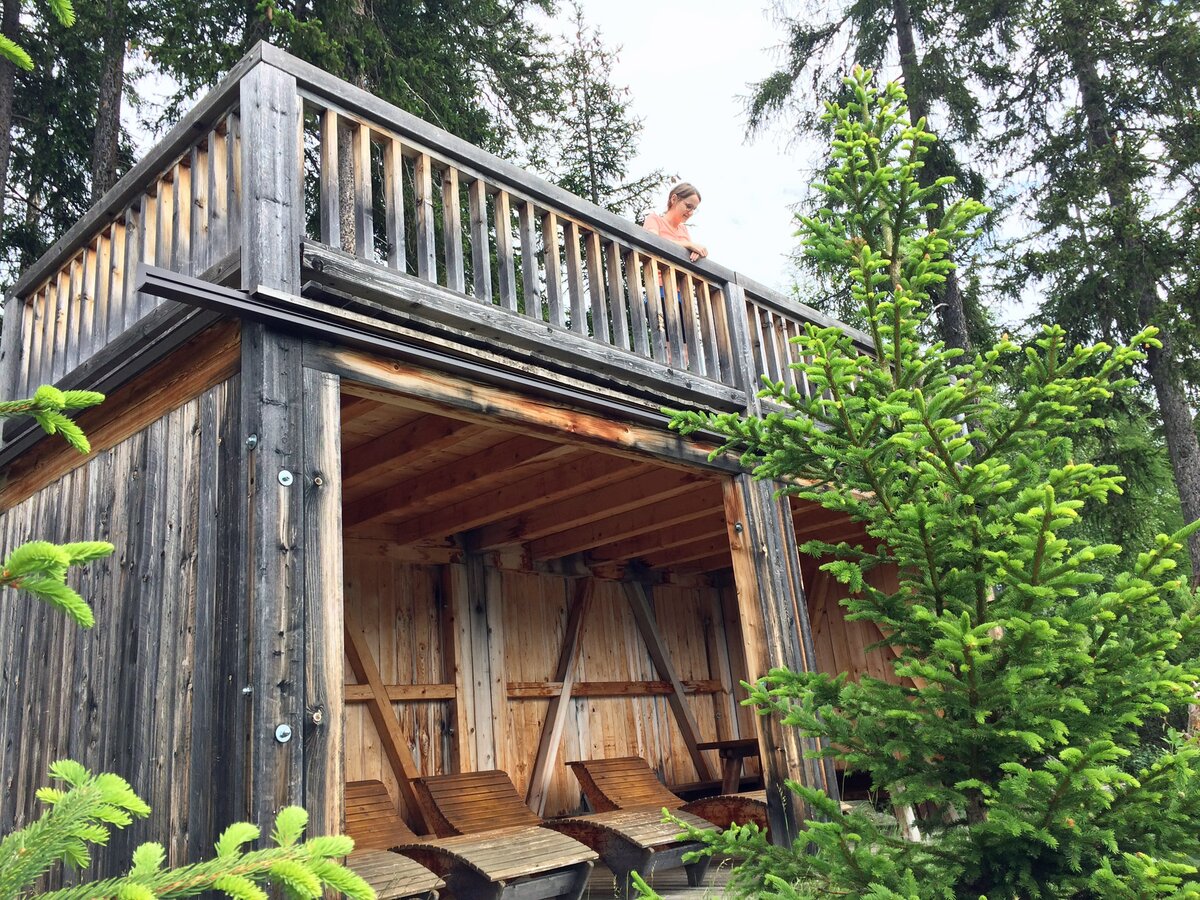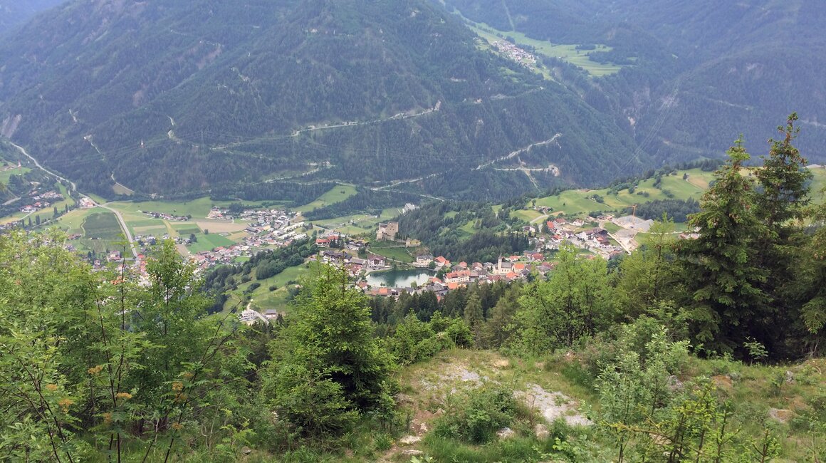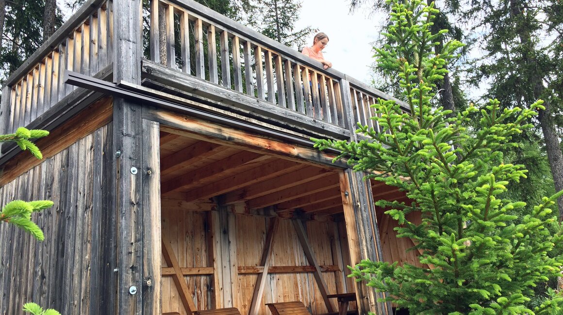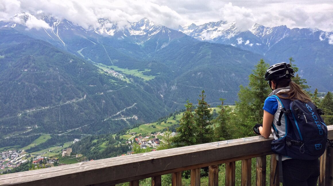 Weiter geht es auf schlottrigem Boden durch schattigen Wald. Und schon wartet das nächsten schöne Plätzchen auf euch: die Aussichtsplattform Schönegg, die den östlichsten Punkt der Tour markiert. Fünf Kilometer sind bereits geschafft. Ab dort werden Biker wieder nach Fiss gelotst. Ein zweistöckiger Holz-Pavillon inmitten von Nadelbäumen beschert dem Rastsuchenden einen grandiosen Blick auf die Natur und das Dorf Ladis. Der Weg führt zunächst unterhalb des Pavillons vorbei und schlängelt sich dann um die Wohlfühlstation herum. Augen auf! Nach einer scharfen Linkskurve versteckt sich das paradiesische Aussichtsplätzchen zu eurer linken Seite. Vorbeiradeln wäre wirklich schade!