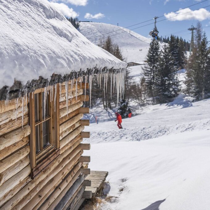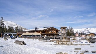 Die ersten Pistenkilometer liegen hinter uns, nun wird es Zeit für eine Pause. In der gesamten Region gibt es so viele tolle Bergrestaurants und Hütten, da fällt die Entscheidung gar nicht so leicht. Marco und ich verabreden uns zur Einkehr in der Seealm Hög. Wir bestellen natürlich Käsespätzle, wie wir es immer in den Bergen machen. Irgendwie gehört das für uns einfach dazu. Die Seealm Hög befindet sich auf 1.820 Metern Höhe und liegt direkt vor dem malerischen Högsee, welcher vor allem im Sommer ein echter Besuchermagnet ist.