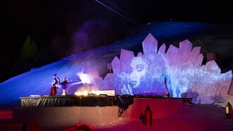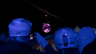 Gegen 20:30 Uhr machen wir uns wieder auf den Weg zur Bahn und fahren erneuert zur Bergstation der Komperdellbahn. Immer mittwochs findet hier in den Bergen nämlich die beliebte Adventure Night statt. Geduldig warten wir auf den Start der Show und sind gespannt, was den Gästen hier geboten wird. Pünktlich um 21 Uhr geht es los und durch Lichter und Projektionen verwandelt sich die Kulisse plötzlich in eine märchenhafte und farbenprächtige Traumwelt. Zahlreiche Artisten und Akrobaten sowie die Skischule Serfaus bieten nun eine beeindruckende Show mit tollen Stunts und Kostümen. Eine super gelungene Abendshow, für welche wir gerne Beifall klatschen. Nach der Show schnappen wir uns beide einen Schlitten und düsen die 4 km lange und gut beleuchtete Rodelbahn hinunter nach Serfaus. Wow, was für ein grandioser Tagesabschluss!