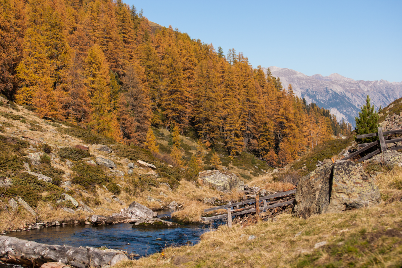 Im Herbst zeigt sich die Natur in den Bergen von Serfaus-Fiss-Ladis von ihrer prächtigsten Seite. Die Bäume präsentieren sich in einem Farbenspiel aus goldenen, rötlichen und braunen Nadeln, die sanft im Wind schaukeln und eine beruhigende Atmosphäre schaffen. Die warmen Strahlen der Herbstsonne dringen zwischen den Ästen hindurch und tauchen die Landschaft in ein zauberhaftes Licht.