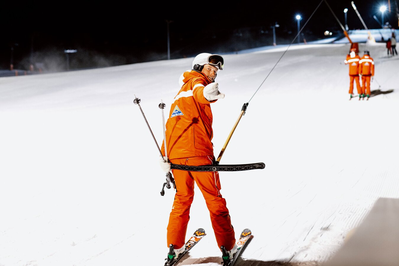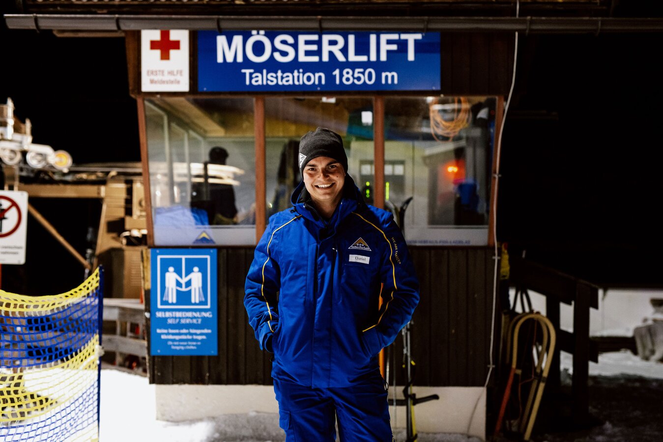 Es ist kurz nach acht Uhr abends, in wenigen Minuten fällt der Startschuss zum wöchentlichen Nightflow, der Skishow in Fiss. Trotzdem bleibt Daniel Frizzi ganz entspannt. „Mittlerweile sind wir ein eingespieltes Team“, lacht er. „Vor der allerersten Show in dieser Saison war das ganz anders“, gibt er zu. „Da war ich – und eigentlich wir alle – sehr nervös. Die allererste Probe im Dezember war grauenvoll, nichts hat geklappt, die erste Generalprobe lief dann super. Da haben wir die finale, zweite Generalprobe kurzerhand abgesagt, um unser Glück nicht überzustrapazieren.“ Der 28-Jährige behält bei der Skishow den Überblick – beruflich und mit voller Begeisterung. „Der Nightflow wird von der Skischule Fiss-Ladis und den Bergbahnen Fiss-Ladis gemeinsam organisiert und veranstaltet. Ich bin seitens der Bergbahnen verantwortlich“, sagt er. Jede Saison hat die Skishow ein neues Motto. „Rock the Snow“ war es im Winter 2022/2023, für diese Saison und die neue Show mit dem Titel „The Eagle Returns“ wurde eifrig geplant. „Wir besprechen eigentlich schon im Winter während der Shows, was wir nächstes Jahr zeigen möchten“, sagt Daniel.