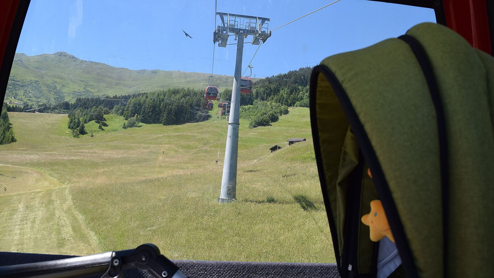 Nicht zu unterschätzen ist der Wind am Schönjoch, deshalb sollten eine Jacke und natürlich auch eine Decke für das Baby im Kinderwagen immer mit dabei sein.