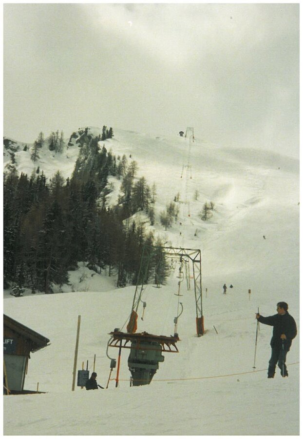 1967. Meine erste Fahrt führte mit dem Einsersessellift rauf zur Möseralm. Mutterseelenalleine auf einem Sessel, Sonnenstrahlen kitzelten mein Gesicht, vor mir meine Schwester, unter mir eine Schlucht. „Gonz schia hoach, aber andersch kimmi nit aucha“, dachte ich mir. „Haschn Bügel zua?“, rief meine Schwester zurück. Ich antwortete fragend: „Was fürn Bügel?!“.