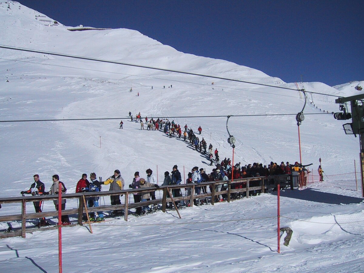 Eine Fahrt mit diesem Lift dauerte damals gut und gerne 20 Minuten. Bei eisiger Kälte kamen einem diese 20 Minuten wie eine Ewigkeit vor. Und wenn man aus dem Lift hinausfiel, musste man zurück zum Einstieg und mit dem Prozedere von vorne beginnen. Wie man auf dem Foto sehen kann, war eine Fahrt ins Masnergebiet schon damals sehr beliebt bei unseren skisportbegeisterten Gästen.