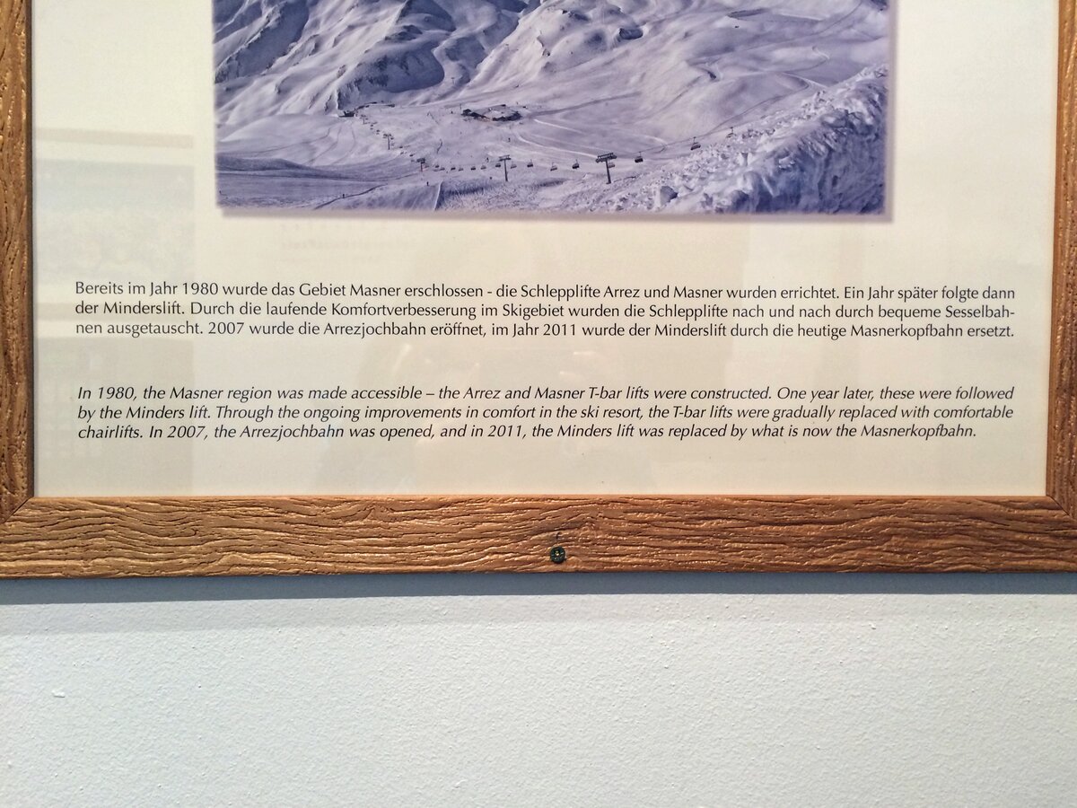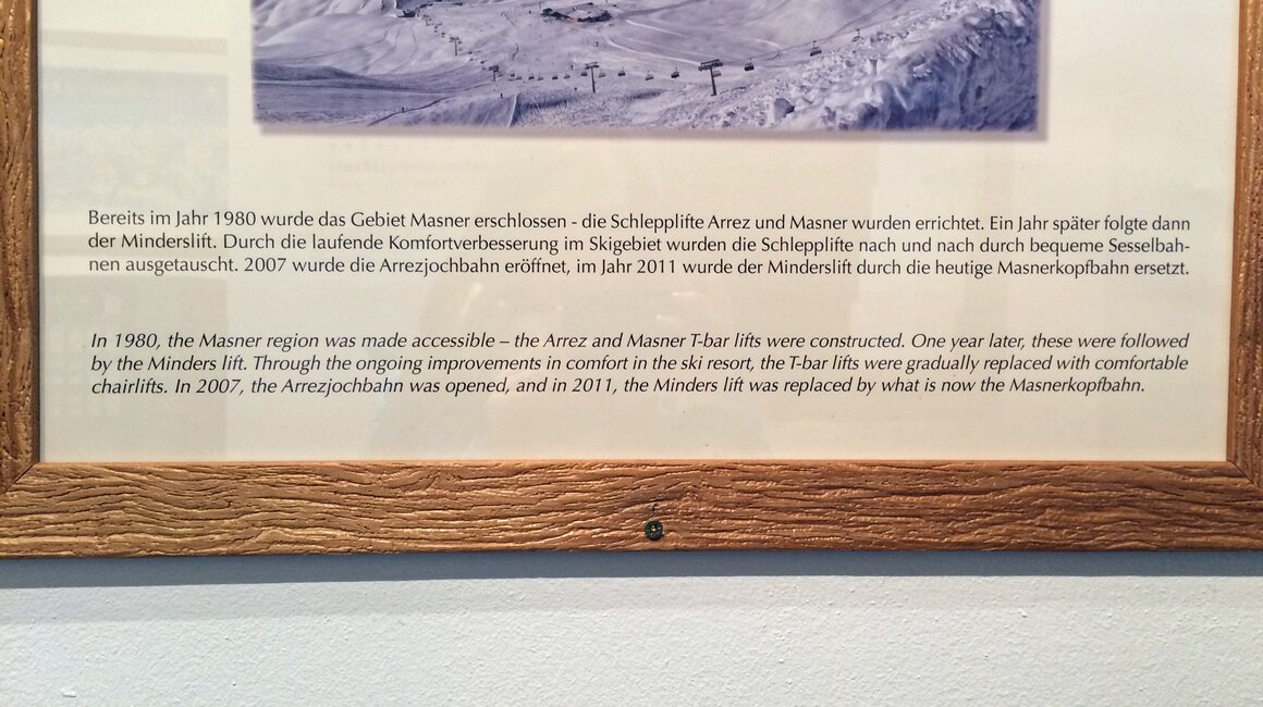 … dass bereits im Jahr 1980 das Gebiet Masner erschlossen wurde – die Schlepplifte Arrez und Masner wurden errichtet. Ein Jahr später folgte dann der Minderslift. Durch die laufende Komfortverbesserung im Skigebiet wurden die Schlepplifte nach und nach durch bequeme Sesselbahnen ausgetauscht. 2007 wurde die Arrezjochbahn eröffnet, im Jahr 2011 wurde der Minderslift durch die heutige Masnerkopfbahn ersetzt.