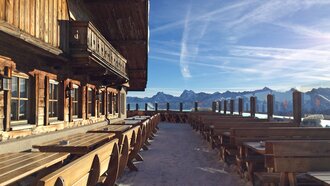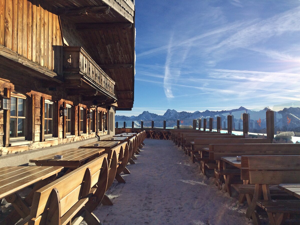 Nach etwa 20 Minuten Fahrt erreichten wir dann die Skihütte Masner bzw. das angrenzende Monte Mare Restaurant. Der Magen knurrte. Ich machte es mir auf der Sonnenterasse der Skihütte Masner bequem. In dieses schöne Plätzchen Erde zu gelangen, ohne dabei die Ski anschnallen zu müssen, ist wirklich ein Luxus. Besonders für Urlauber die nicht mehr allzu sicher auf den Brettern stehen, ist dieses Angebot optimal! So können auch Nicht-Skifahrer in den Genuss des Masnergebietes kommen.