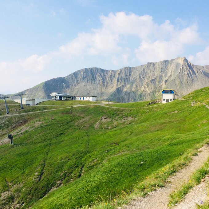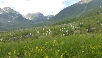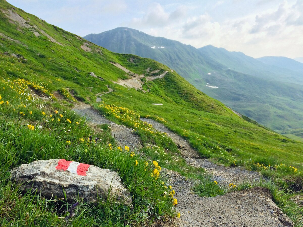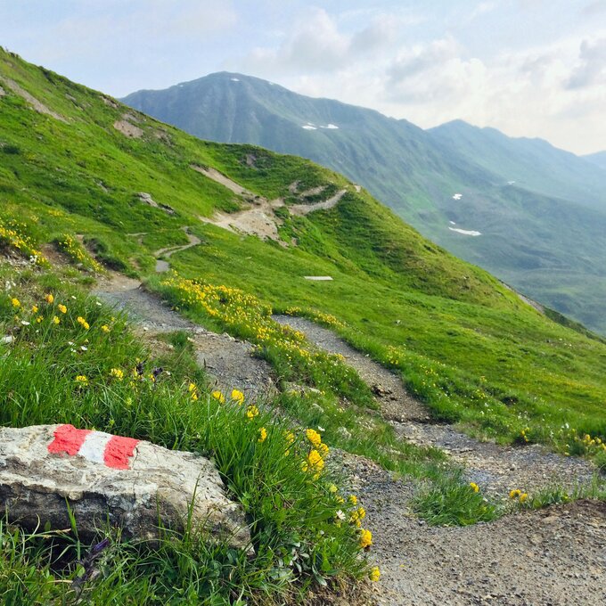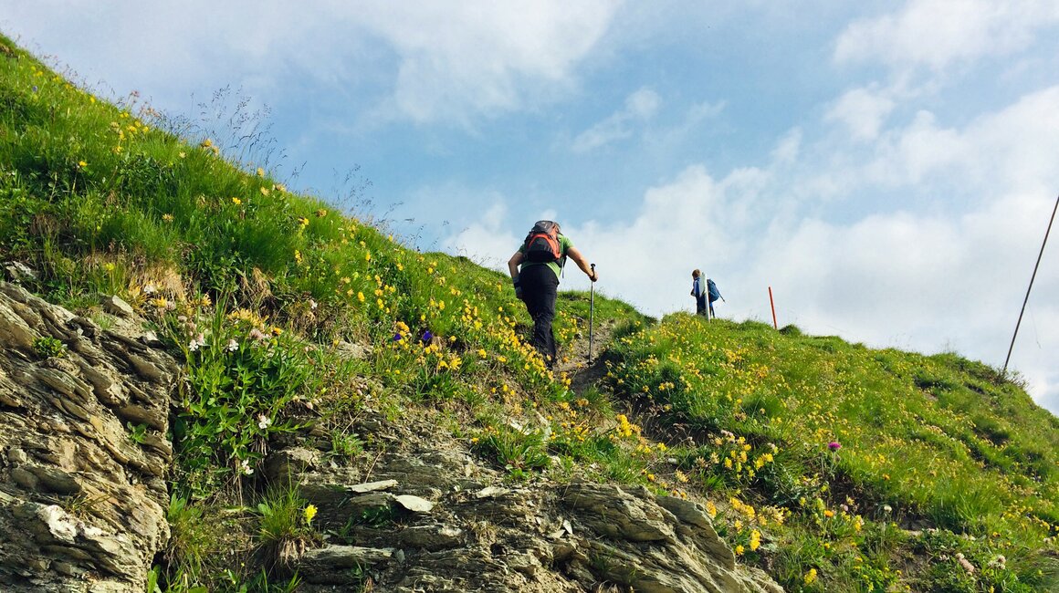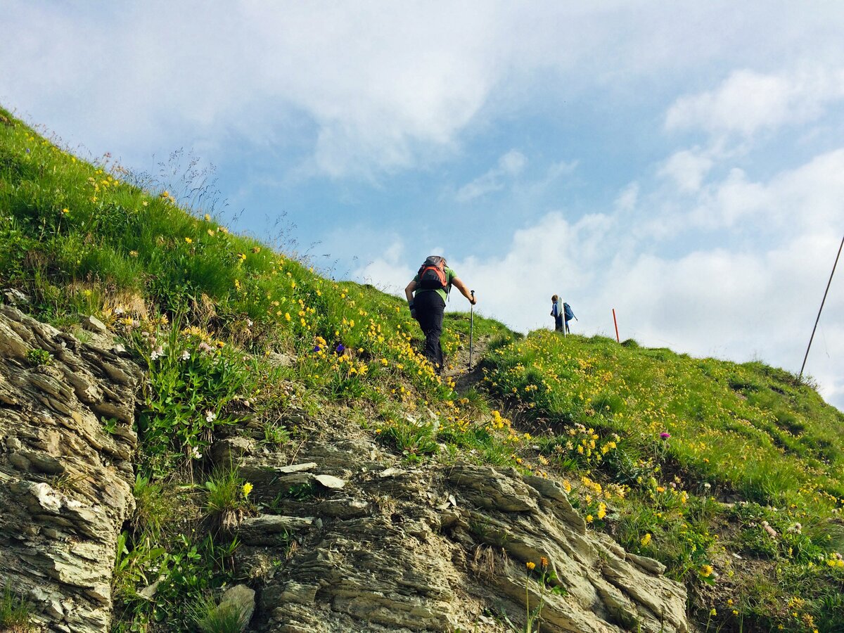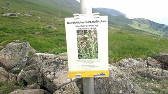 Das letzte Stück des Murmeltiersteiges verläuft parallel zum Blumensteig, auf dem du Spannendes über die Alpenflora erfährst.