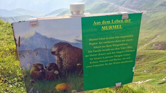 So werden die Mitglieder einer Murmeltierfamilie bezeichnet: Vater, Mutter und die Jungen. Entlang des Murmeltiersteiges sind Informationstafeln zu finden, die dich in die Welt der heimischen Nager eintauchen lassen. Hunderte von Murmeltieren hausen in dieser hochalpinen Gegend. Verharre kurz und lausche den Warnpfiffen der Murmeltiere in dieser typischen Murmeltiergegend! Mit etwas Glück kannst du sogar ein Murmeltier erblicken.