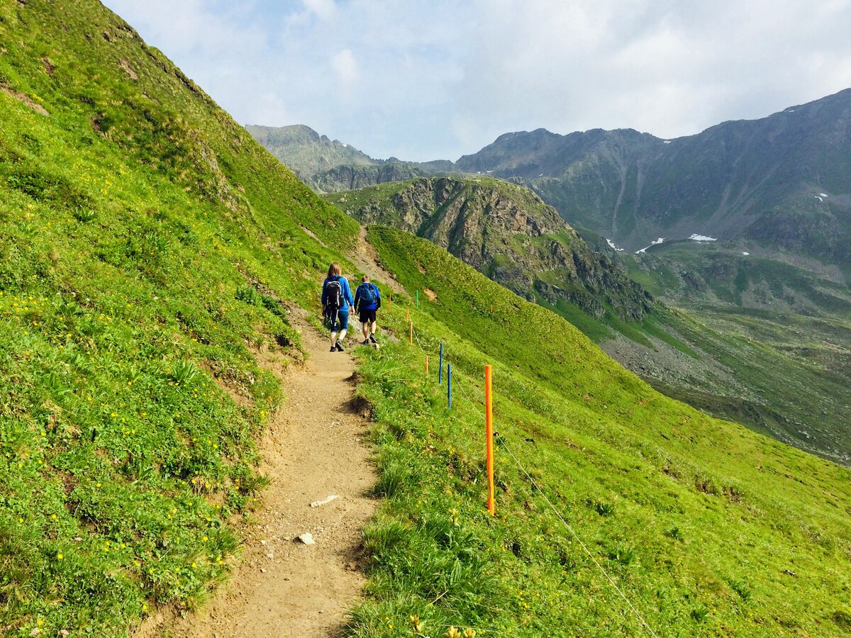 Ich freute mich sehr auf unsere Wandertour und sogleich trugen mich meine Füße, in Wanderschuhe gesteckt, in ca. 30 min vom Lazid hinüber zur Scheid bzw. zur Liftstation Moosbahn (2.424 m). Tipp: Eine schöne Alternative zum Fahrweg ist der Steig über die Böderköpfe. Dazu einfach bis zur Lawensbahn schreiten und für kurze Zeit bis zur Scheid in die Geschichte der Schmugglerkönige (Schmugglersteig) eintauchen.