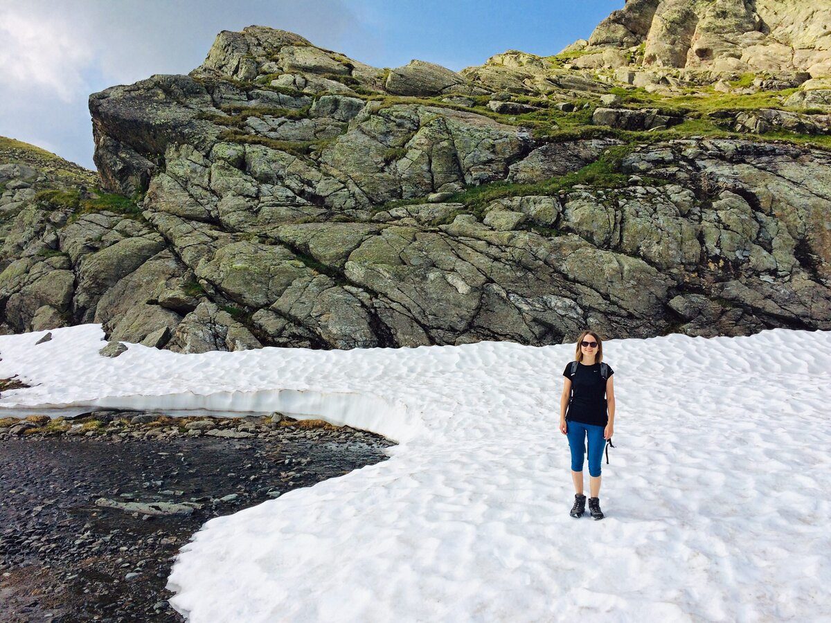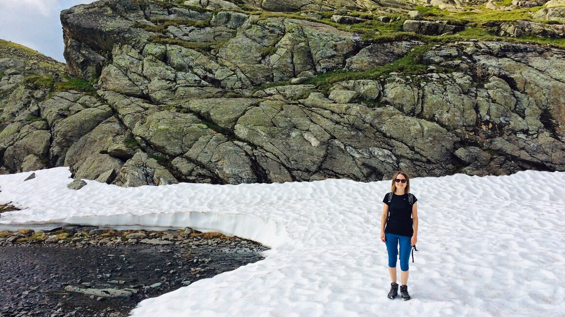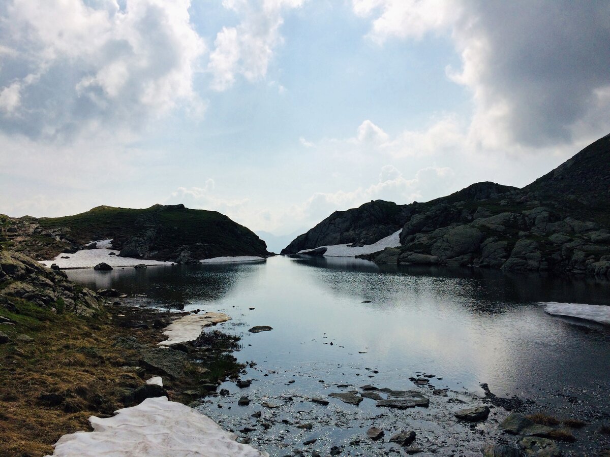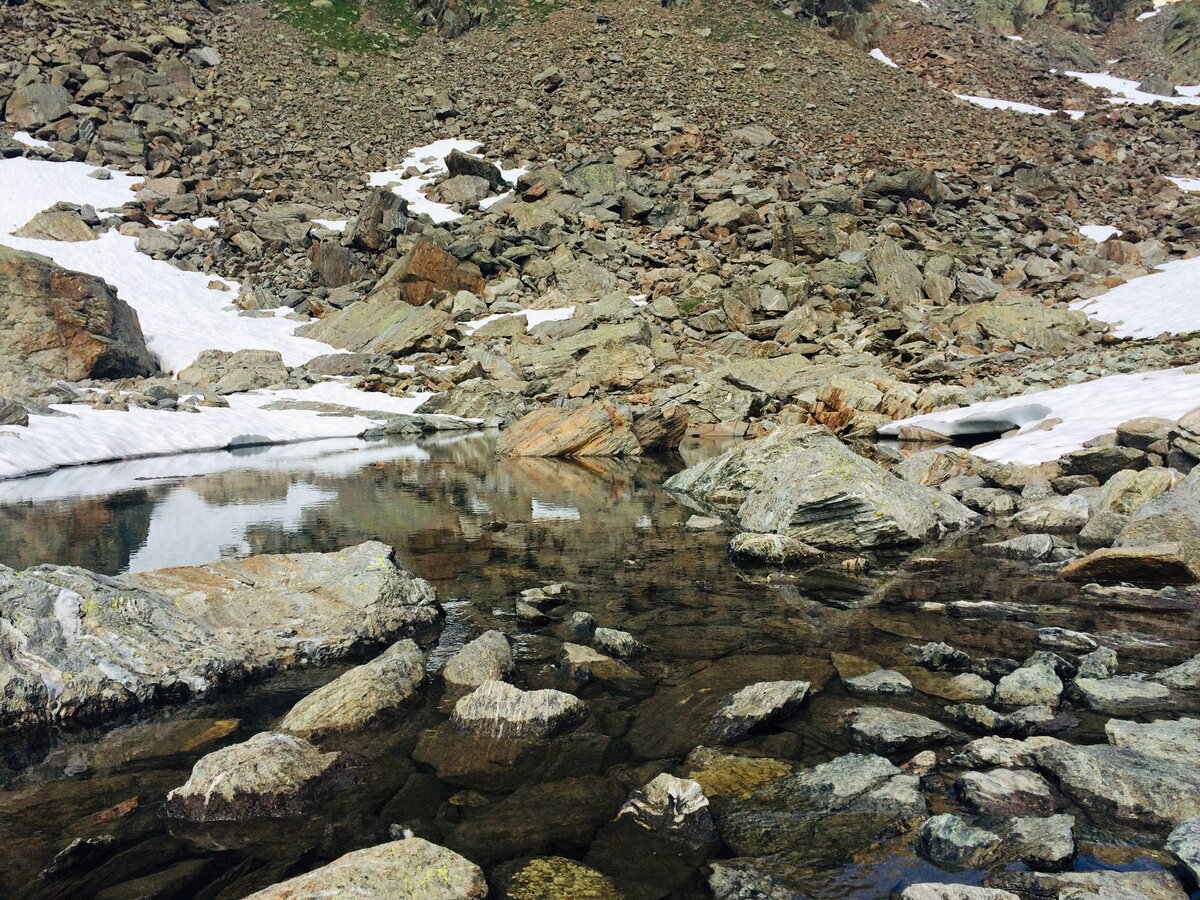 Nach ca. 40 min erreichst du über den Steig 24, der unter anderem über Gebirgsbäche und Schneefelder führt, die Oberen Glockhäuser. Das Gebirgswasser plätschert unter- und oberirdisch durch die hochalpine Gegend. Die Natur spielt ein Open-Air-Konzert für uns. Links neben der steilen Felswand führt der Weg hoch zu den Seen.