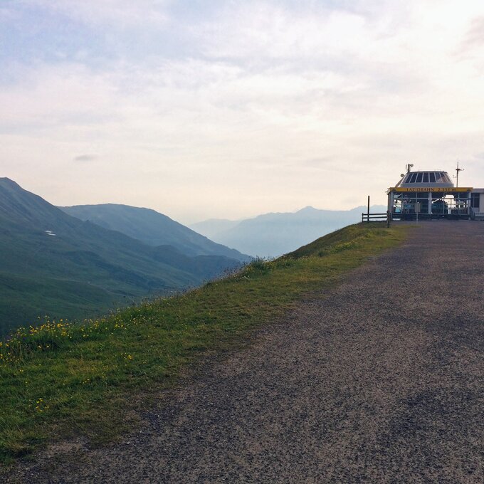 Frühmorgens starteten wir unsere Wandertour in Serfaus. Die erste Gondel beförderte uns hinauf zum Lazid auf 2.458 Höhenmeter. Die Stimmung am Berg war einfach magisch. Wir fühlten uns, als wären wir drei alleine im Serfaus-Fiss-Ladis Gipfelmeer unterwegs. Morgenstund hat wahrlich Gold im Mund.