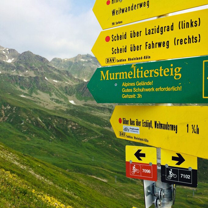 Viele Wege führen zum Glück bzw. zum Furglersee. Der Murmeltiersteig kann selbstverständlich auch in umgekehrter Richtung begangen werden. Hierfür benötigt man aber ein wenig mehr Kraft in den Wanderwadeln.
