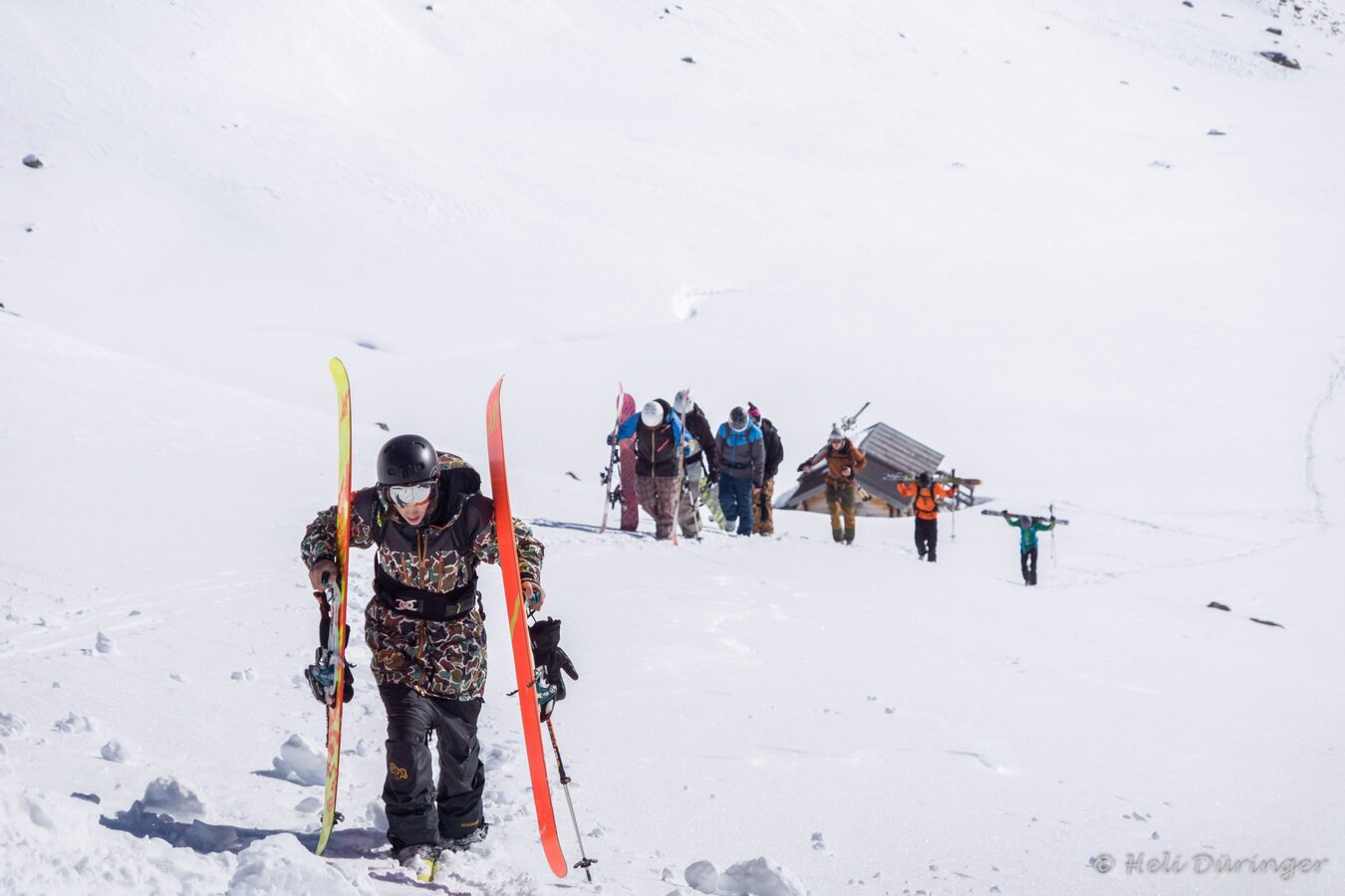 Der Schnee knirscht beim Aufstieg unter den Boots oder den Schischuhen, das Board oder die Schier sind am Rucksack oder einfach auf der Schulter. Die Luft ist klirrend kalt, der eigene Rhythmus wird wichtig. Oft reicht gerade mal ein kurzer Aufstieg bis zum nächsten Sattel, um eine völlig andere Perspektive zu erlangen. Und dann: Schwereloses Gleiten durch unverspurte Powderhänge, der Schnee staubt, die Luft vibriert. Freiheit inhalieren und noch etwas mehr Abstand vom Alltag gewinnen.