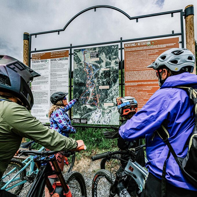 Vergiss nicht, immer ein Smartphone und/oder GPS-Gerät zur Orientierung mitzuführen. Zudem ist es sinnvoll, eine Karte der jeweiligen Region einzupacken, falls einmal der Akku oder die Batterien leer sind. Die Bikekarte der Region ist kostenlos in allen Infobüros der Region erhältlich.