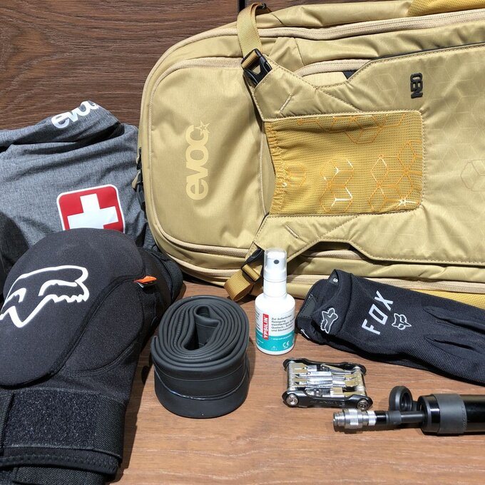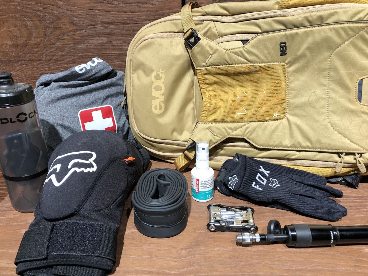 Des Weiteren solltest du bei jeder Mountainbike-Tour ein kleines Reparaturset und ein Erste-Hilfe-Paket mitnehmen. Unfälle passieren schnell und hinterlassen Schäden am Fahrrad und kleinere bis größere Verletzungen bei dir. Schnitt- und Schürfwunden gehören umgehend desinfiziert. Entweder mit einem Desinfektionsspray oder auch mit Wasser. Bei größeren Wunden solltest du die Tour abbrechen und einen Arzt aufsuchen.