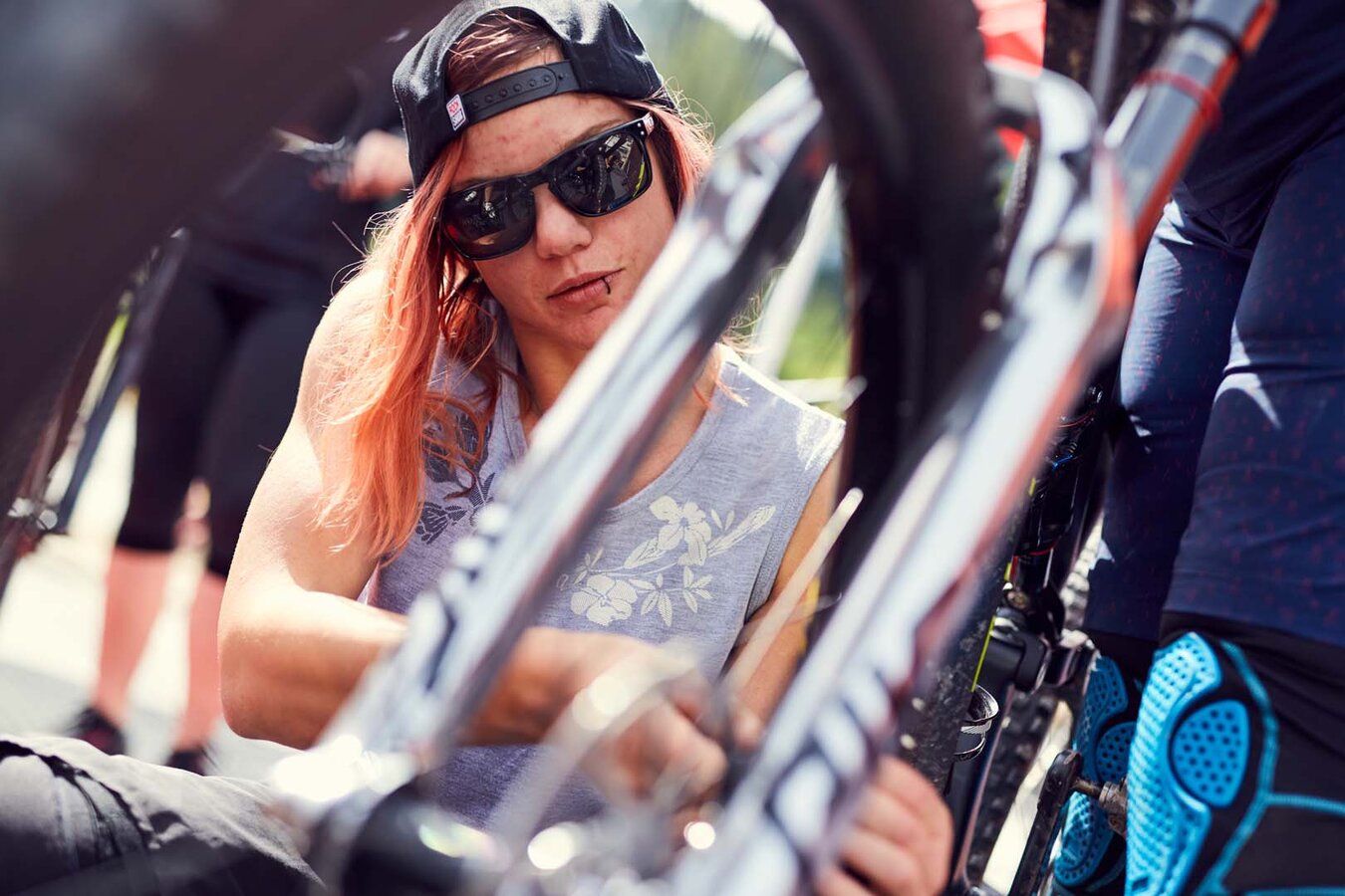Denke in puncto Kleidung auch an Fahrradhandschuhe, Fahrradschuhe und eine Brille, um deine Augen vor Luftzug und UV-Strahlung zu schützen. Stelle außerdem sicher, dass dein Rucksack immer fest am Körper sitzt. Er darf während der Fahrt nicht verrutschen.