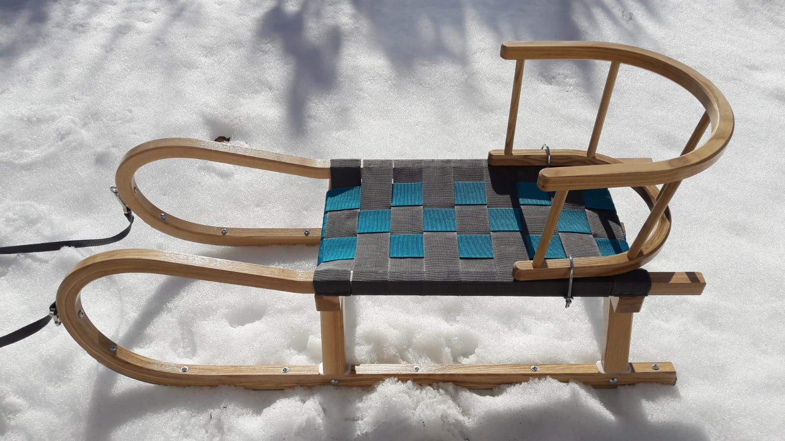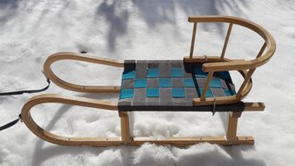 Wenn du auf den Kinderwagen verzichten möchtest, bietet sich ein Schlitten mit Rückenlehne an. Falls die Kleinen noch nicht sitzen können, kann ein Kinderwagenaufsatz oder eine Babyschale verwendet werden. Damit nichts verrutscht, sicher auf dem Schlitten fixieren. So kann die Winterlandschaft auch mit den Kleinsten genüsslich erkundet werden.