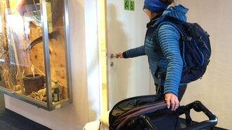 Nachdem der Kinderwagen die „Piste“ gemeistert hat, bittet die Schönjochbahn zum Einstieg via separatem Kinderwagen-Eingang. Das Wirtshaus Steinegg an der Mittelstation bietet sich ebenfalls an, mit dem Kinderwagen einen Winterausflug in die Berge zu machen. Der Weg zum Restaurant ist gut meisterbar. Wichtig: Um zur Familientoilette mit Wickeltisch (Damen-WC) zu gelangen, nimm den unteren Eingang, damit du nicht die lästige Treppe überwinden musst.