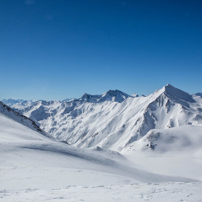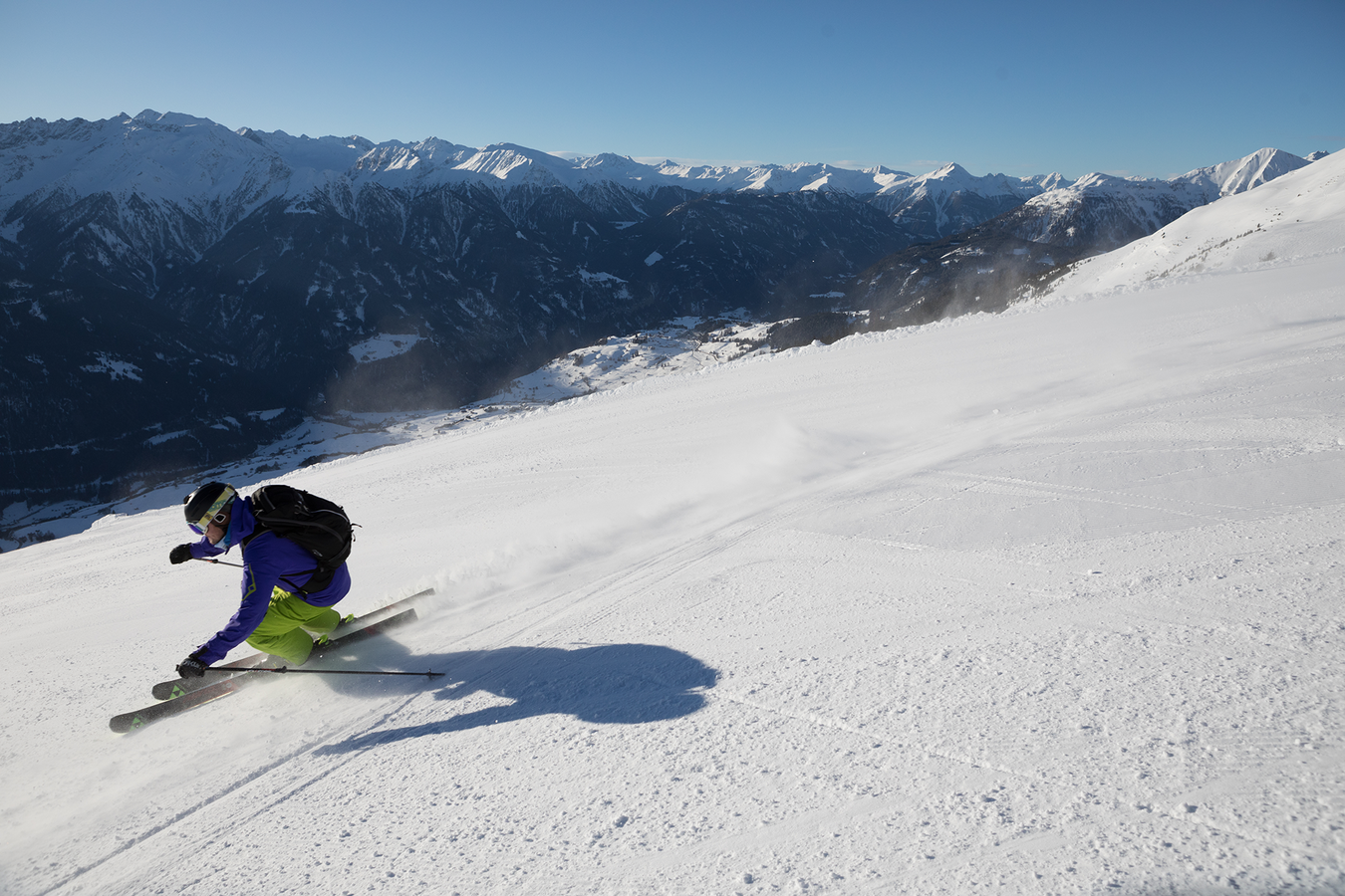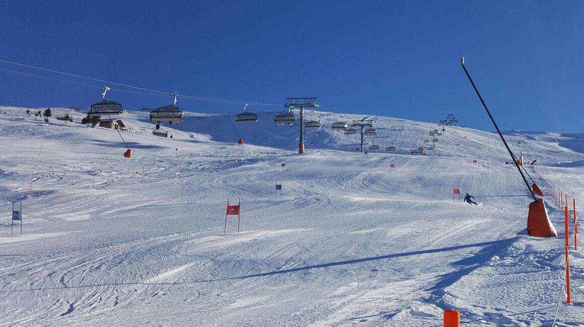 Die Abfahrt lässt das Herz eines jeden Skifahrers höher schlagen, denn es erwartet einen nicht nur eine lange und breite Piste, sondern auch ein imposantes Bergpanorama!
