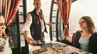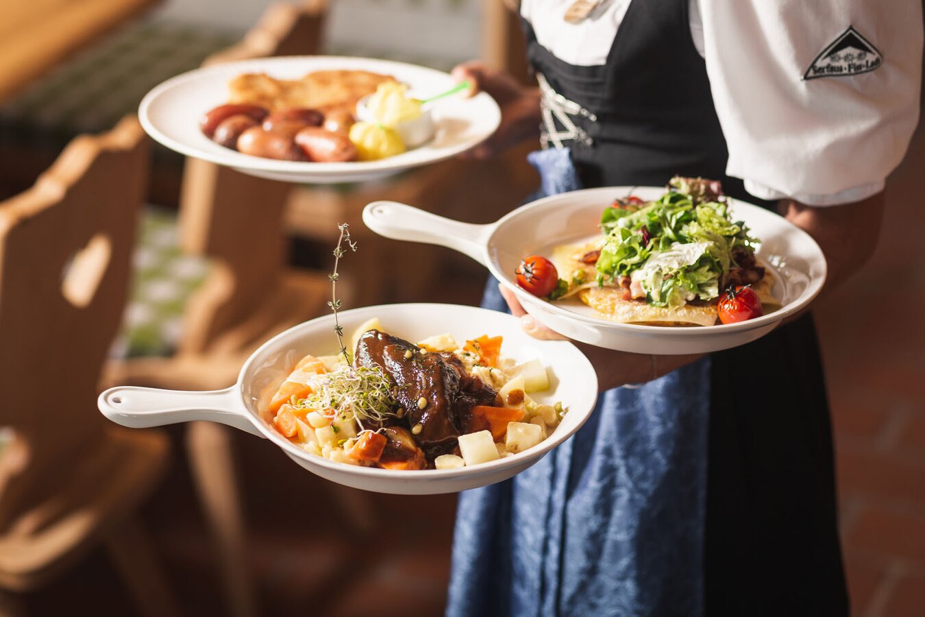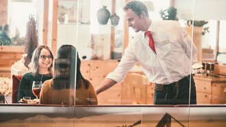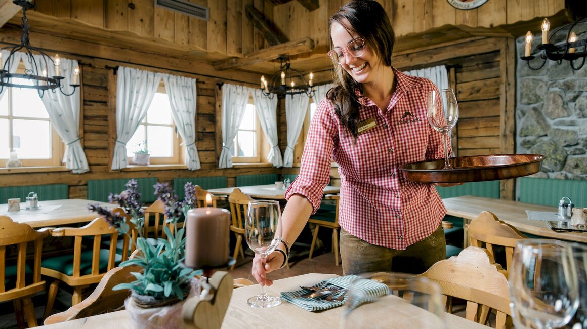 Seit Winter 2012/13 arbeitet der Niederländer bei den Bergbahnen. „Jeder Arbeitstag in den Bergrestaurants wartet mit neuen Überraschungen auf mich. Natürlich kommen auch einige bekannte Gesichter zu uns, in der Regel sind es aber immer neue Menschen, denen ich begegne. Es wird also nie langweilig. Morgen heiratet beispielsweise ein Paar in unserem Cube“, so der sportliche Kellner, der im Sommer in der Woche gerne mal 3.000-5.000 Höhenmeter mit seinem Rad zurücklegt. Wo fühlt er sich am wohlsten? Auf den etwas abgelegeneren Routen in SFL, um den Kopf ordentlich freizubekommen. „Mein Job ist sehr vielfältig. Wenn es morgens noch ruhig ist, unterstütze ich die Küche und rolle Knödel oder räume im Winter den Schnee von den Terrassen."