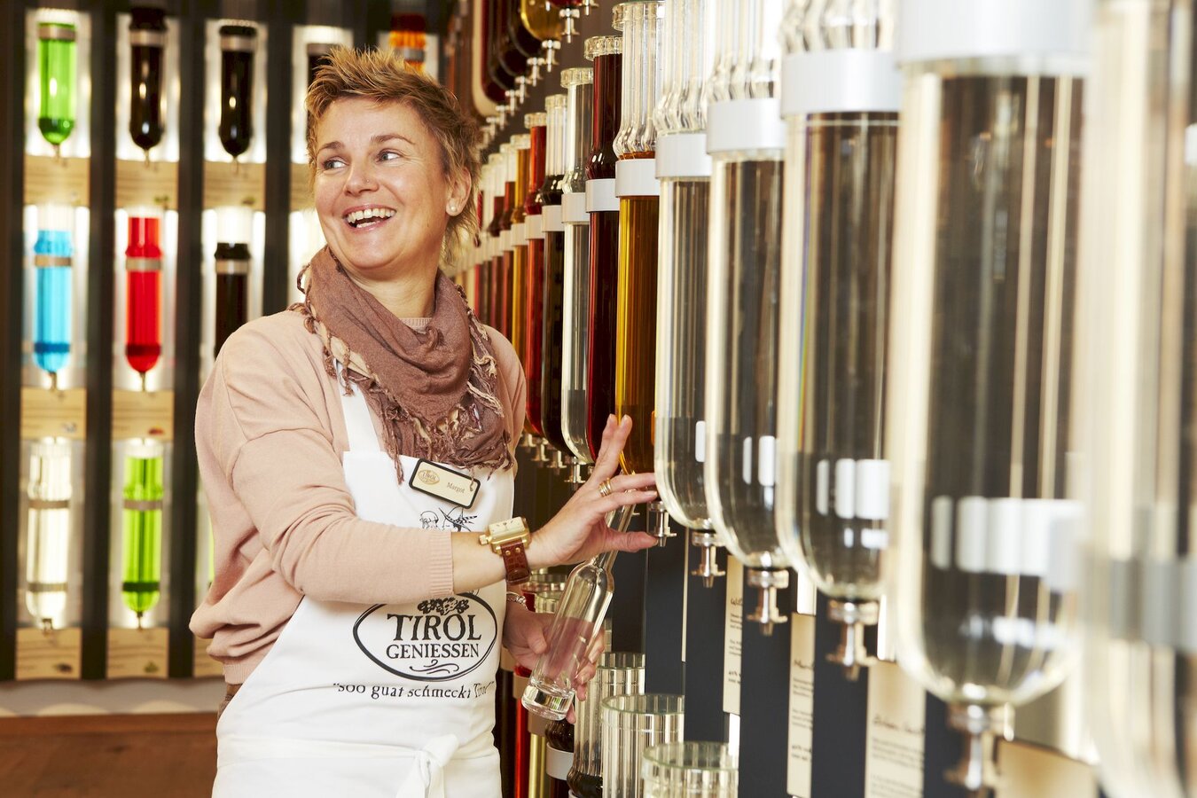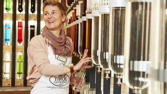 Seit 2014 ist die Tirolerin die gute Seele eines ganz besonderen Ladens in Serfaus. Margot hat den Wohlfühlort, wie sie ihn mittlerweile gerne nennt, mitaufgebaut und ist mit Leib und Seele Verkäuferin. „Für mich ist es der schönste Laden in ganz Serfaus und der perfekte Arbeitsplatz“, lächelt Margot. „Ich habe sehr viele Stammkundschaften, also Wiederholungstäter. Es macht mich stolz, wenn sich meine Besucher bei mir wohlfühlen und mit einem strahlenden Gesicht das Geschäft verlassen. Ich verkaufe ehrliche Produkte und das spürt die Kundschaft. Die Nachbarn kommen auch immer gerne auf einen Ratscher vorbei und wir genießen beim Dorfbrunnen die gemeinsame Zeit. Was für ein Glück: Am Abend verschließe ich die Tür und kann sagen: Heint war wieder an guater Tag!“