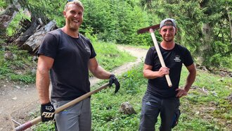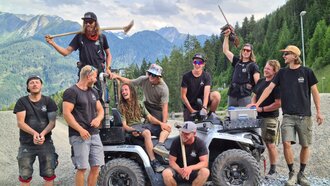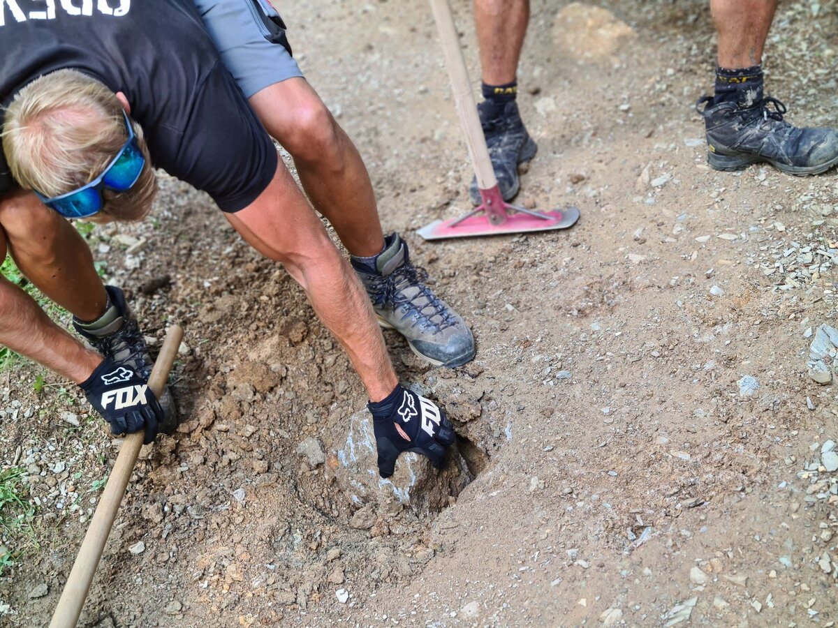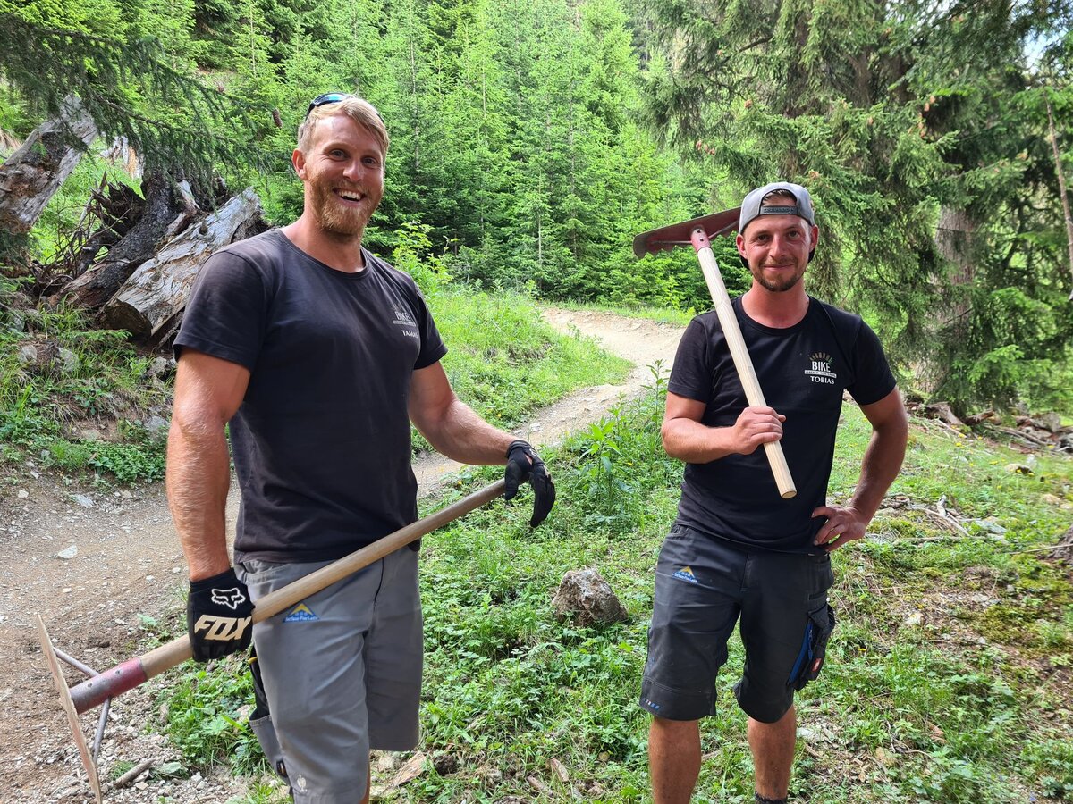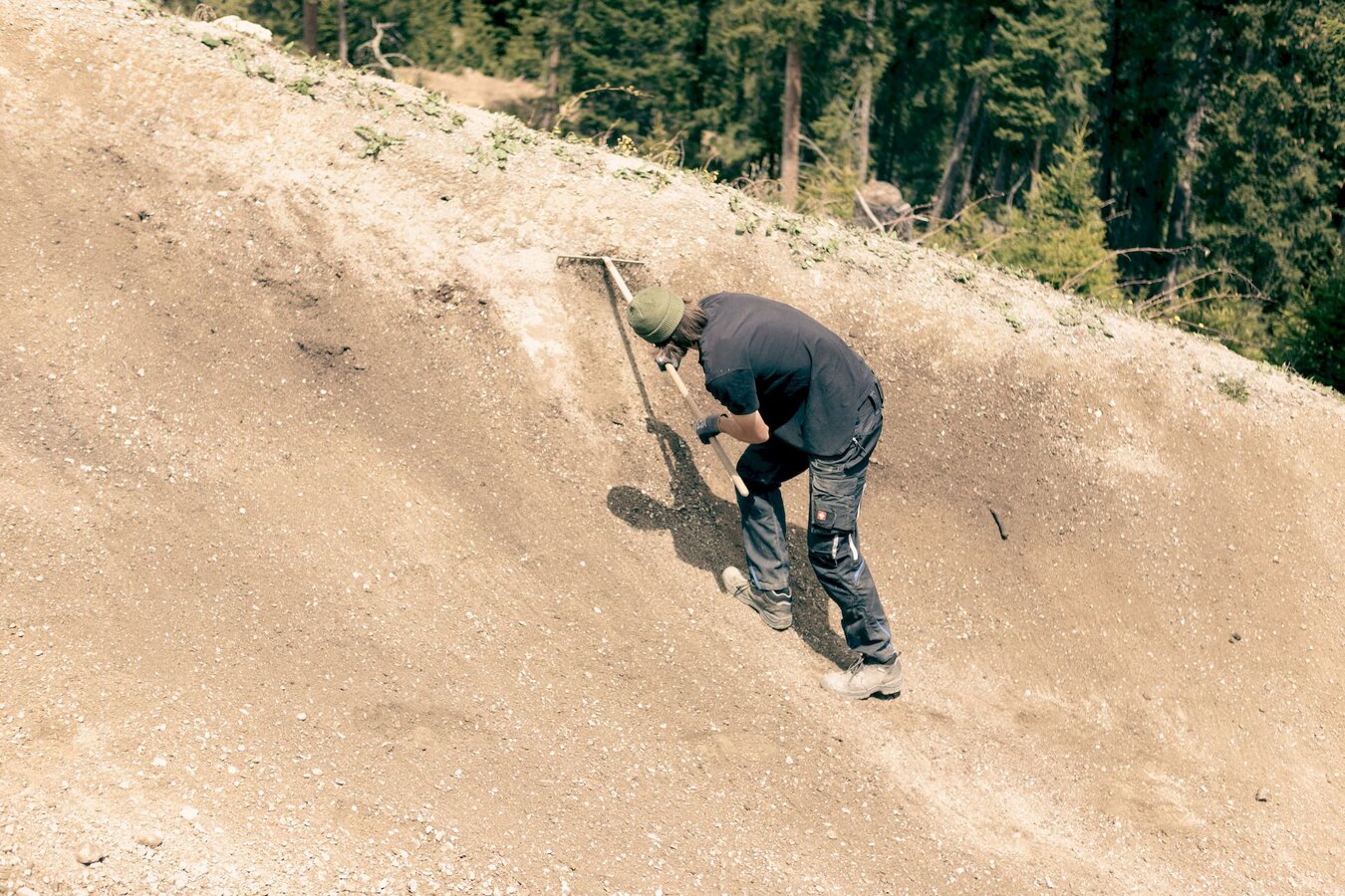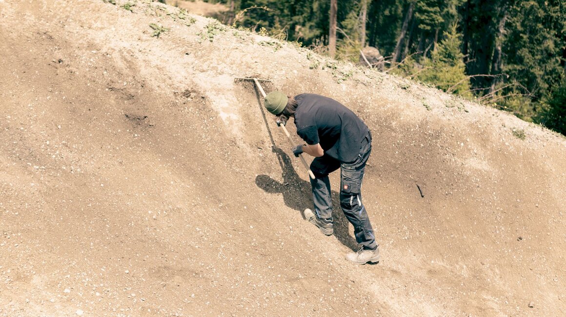 Das Team kennt sich nicht nur mit klassischen Shapetools aus, sondern übernimmt auch vielfältige Aufgaben – von Mäharbeiten bis hin zum Einsatz mit dem Bagger. Die Arbeit auf den Trails ist vielseitig und erfordert sowohl technisches Geschick als auch ein gutes Gespür für die Strecke. Eines ist sicher: Langweilig wird es dabei nie.