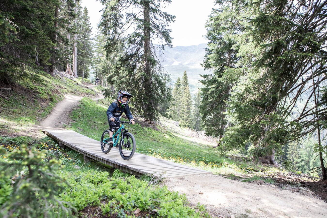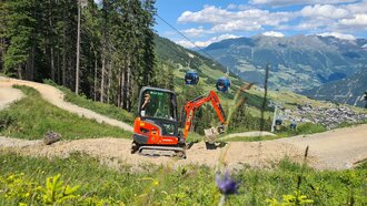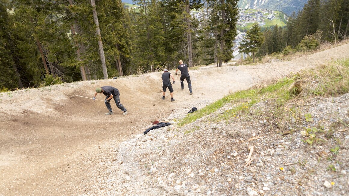 Rund 2.000 ARBEITSSTUNDEN pro Monat werden rein in die Wartung und Instandhaltung der Trails investiert. Die Shaper sind immer die Ersten und auch die Letzten auf den Strecken – wie im Winter auf den Pisten. Morgens und abends schwärmt das Team zu seinen KONTROLLFAHRTEN aus: Die Bikeparktrails werden täglich, die Singletrails spätestens alle zwei Tage kontrolliert. Untertags werden Optimierungsarbeiten erledigt. Es wird ausgemäht, Holzkonstruktionen werden vor Ort ausgebessert, Sprünge optimiert, usw.
