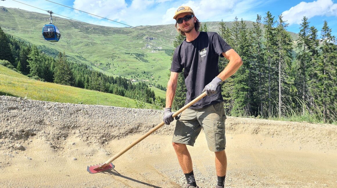 Loses Material wie Riesel und Schotter wird regelmäßig mit Besen und Rechen von den Trails entfernt, um ein sicheres und flüssiges Fahrerlebnis zu gewährleisten. Besonders auf den Strecken im Bikepark ist die Frequenz an Fahrenden höher als auf klassischen Singletrails – das führt zu stärkeren Bremswellen und erhöhter Erosion. Damit die Abfahrt auch für alle nachfolgenden Biker:innen in gutem Zustand bleibt, gilt: BREMSSPUREN möglichst VERMEIDEN und mit Rücksicht unterwegs sein. So bleibt der Fahrspaß für alle erhalten.