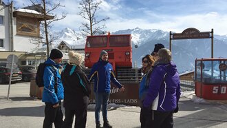 Nach dem Besuch der Werkstätte fuhren wir mit der Schönjochbahn hoch auf den Berg. Die Schönjochbahn ist eine der modernsten Gondelbahnen, da sie in der Mittelstation getrennt werden kann.